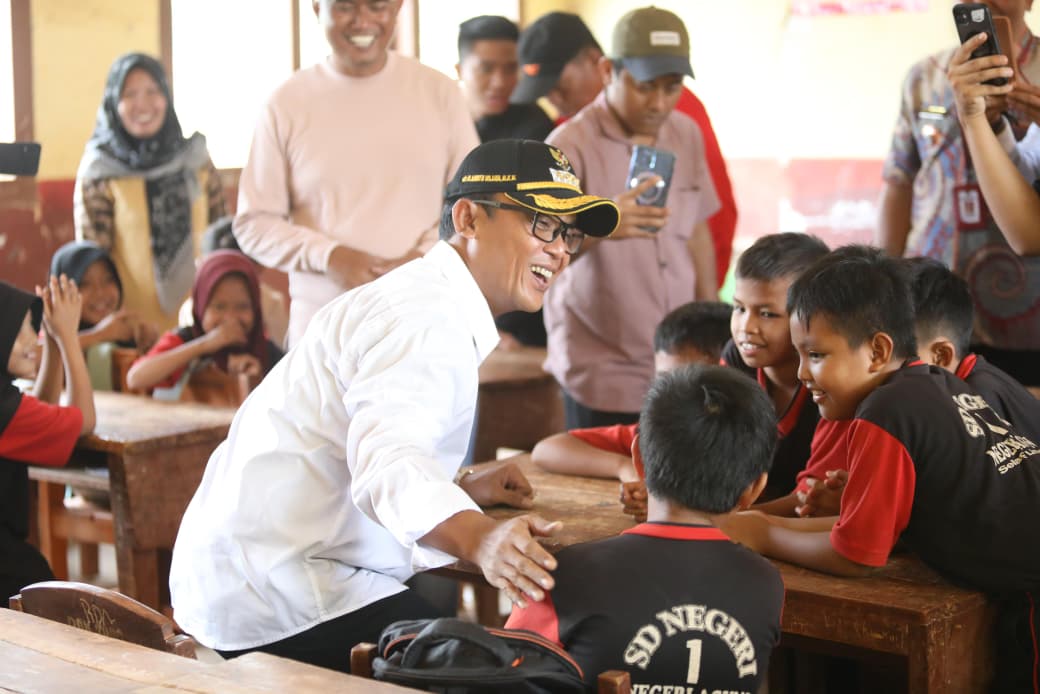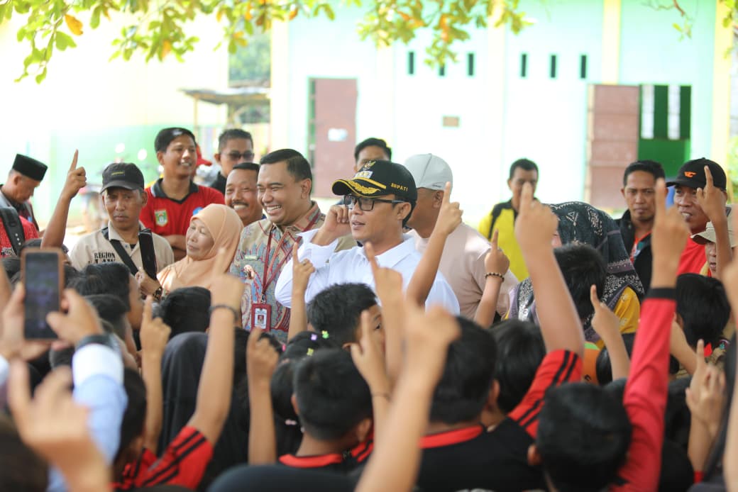 Bupati Lampung Tengah, Ardito Wijaya, melaksanakan kunjungan kerja ke SD Negeri 1 Negeri Agung, Kecamatan Selagai Lingga, pada Jumat (03/10/2025). Dalam kunjungan tersebut, Bupati Ardito didampingi Anggota DPRD Lampung Tengah, Pur Heri Sumardiyanto, serta Kepala Dinas Pendidikan dan Kebudayaan Lampung Tengah, Nurohman. Kunjungan ini menjadi bentuk perhatian Pemerintah Kabupaten Lampung Tengah terhadap dunia pendidikan, khususnya di wilayah ujung barat kabupaten. Bupati Ardito menegaskan bahwa pendidikan harus dapat diakses secara merata oleh seluruh anak-anak, tanpa terkecuali, termasuk di daerah perbatasan. Selain memastikan proses belajar mengajar berjalan dengan baik dan fasilitas sekolah dalam kondisi layak, Bupati Ardito juga membagikan susu gratis kepada siswa-siswi. Program tersebut merupakan dukungan terhadap kebijakan pemerintah pusat dalam meningkatkan gizi anak, agar tumbuh kembang generasi penerus bangsa lebih optimal. Bupati Ardito mengatakan, “Pendidikan adalah kunci masa depan anak-anak kita. Oleh karena itu, pemerintah daerah terus berupaya agar sekolah-sekolah di Lampung Tengah, termasuk di daerah perbatasan, memiliki sarana yang layak. Kami juga mendukung program pemerintah pusat dengan memberikan asupan gizi tambahan, seperti susu, agar anak-anak kita sehat dan cerdas.” Kehadiran Bupati Ardito dalam kegiatan ini mendapat sambutan hangat dari para guru, siswa, dan masyarakat sekitar. Hal ini menjadi wujud nyata komitmen pemerintah daerah dalam meningkatkan mutu pendidikan sekaligus kesejahteraan peserta didik di Lampung Tengah. (Diskominfotik Lampung Tengah)