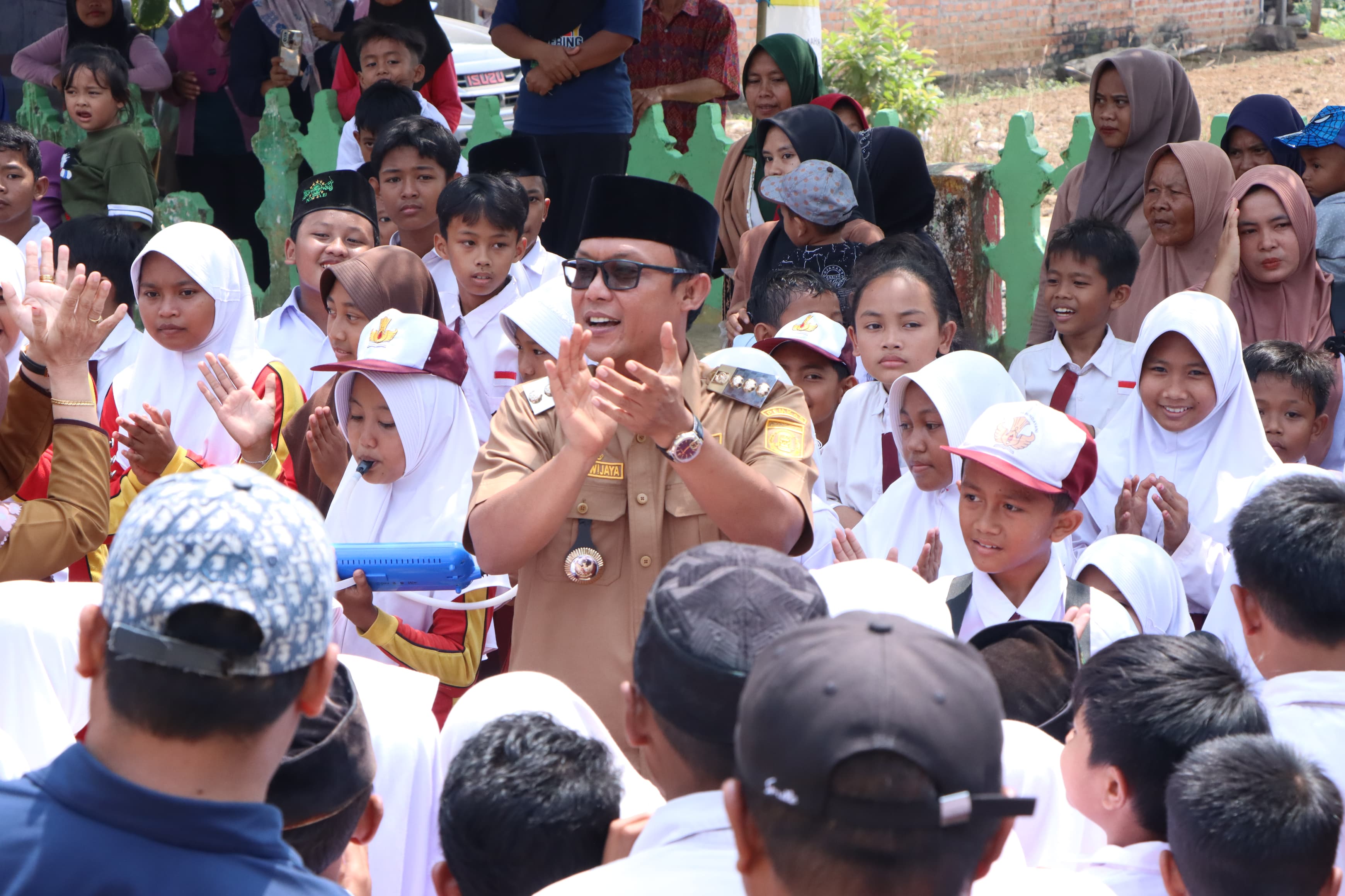Dalam rangkaian kunjungannya untuk meninjau progres peningkatan ruas Jalan Buyut Ilir – Tanggul Angin, Bupati Lampung Tengah, Ardito Wijaya, menyempatkan diri mengunjungi SD Negeri 3 Buyut Ilir, Kecamatan Gunung Sugih, pada Senin (11/08/2025). Kunjungan tersebut sekaligus dimanfaatkan Bupati Ardito untuk membagikan susu kepada siswa-siswi sekolah dasar tersebut sebagai bagian dari dukungannya terhadap program pemerintah pusat dalam pemenuhan gizi anak usia sekolah. Bupati Ardito menyampaikan komitmennya dalam mendukung penuh program strategis pemerintah pusat, terutama yang berkaitan dengan peningkatan kualitas sumber daya manusia sejak usia dini. “Program pembagian susu ini sangat positif dan kami dari pemerintah daerah siap mendukung pelaksanaannya. Anak-anak adalah aset masa depan, dan pemenuhan gizi mereka merupakan langkah awal dalam menciptakan generasi yang sehat dan cerdas,” ujar Bupati Ardito. Lebih lanjut, beliau juga menegaskan bahwa Pemerintah Kabupaten Lampung Tengah akan terus berkolaborasi dengan instansi terkait agar program serupa dapat menjangkau lebih banyak sekolah di wilayahnya. (Diskominfotik Lampung Tengah)