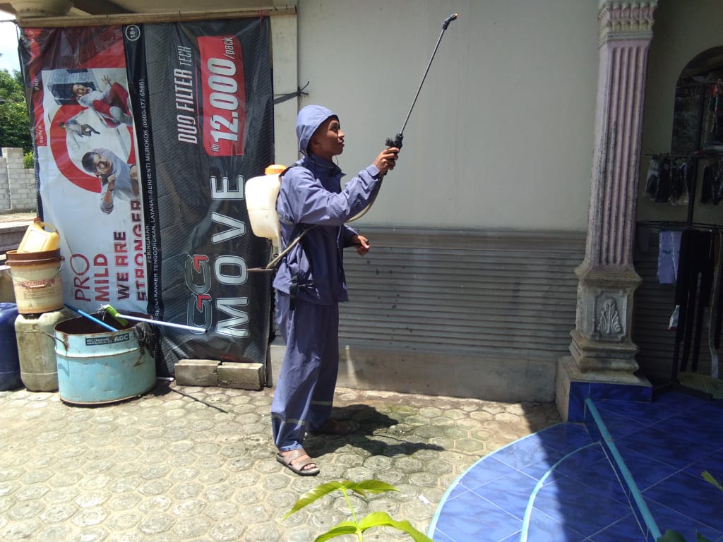 Kegiatan gotong royong dan penyemprotan disinfektan di dusun 3 kampung Gunung Batin Udik kecamatan Terusan Nunyai