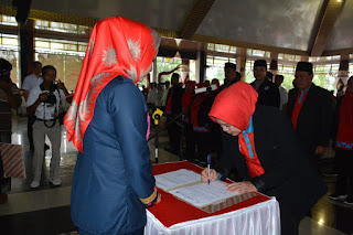 GUNUNG SUGIH - RAPEMDA 92,8 FM, Pengurus Kabupaten Persatuan Drum Band Indonesia (PDBI) Kabupaten Lampung Tengah periode 2019-2022 resmi dikukuhkan. Organisasi ini dipimpin Ibu Hj.Ellya Lusiana Loekaman yang dikukuhkan Ketua PDBI Provinsi Lampung Ibu Aprilani Yustin Ficardo di gedung sesat agung Nou Balak Gunung Sugih , Rabu 06 Maret 2019. Dalam sambutannya Ketua PDBI Provinsi Lampung Ibu Aprilani Yustin Ficardo berharap, pengurus yang baru saja dilantik harus mampu membuat program pembinaan hingga ke pelosok desa, Sebab menurut Ibu Yustin potensi drum band maupun marching band di Kabupaten Lampung Tengah sangat besar. Ibu Yustin juga menyebutkan, pembinaan drum band harus melibatkan seluruh stakeholder yang ada, seperti pihak sekolah, KONI kabupaten, kecamatan maupun pemerintah kecamatan. Sementara itu Ibu Hj Ellya Lusiana Loekman selaku Ketua yang baru dikukuhkan sebagai Ketua PDBI Kabupaten Lampung Tengah Dalam Sambutannya mengatakan momentum pelantikan dan pengukuhan ini menjadi awal yang baik bagi kita semua dalam upaya menyukseskan drum band menjadi salah satu cabang olah raga yang banyak diminati oleh generasi muda Kabupaten Lampung Tengah. Untuk itu ditambahkan ibu Hj.Ellya diperlukan kerja keras dan komitmen dari tidak hanya seluruh unsur PDBI Kabupaten Lampung Tengah tapi juga seluruh elemen masyarakat, pemerintah dan sektor swasta dalam mewujudkan kemajuan drum band di Kabupaten Lampung Tengah. Selain itu Ibu Hj.Ellya Lusiana Loekman mengajak seluruh Pengurus PDBI Kabupaten Lampung Tengah untuk memulai perubahan positif di mulai dari internal organisasi terlebih dahulu dan menyatukan komitmen dalam rangka mengembangkan sektor olah raga drum band. Lebih Lanjut Ibu Hj.Ellya Lusiana Loekman berharap drum band maupun marching band umumnya didominasi oleh para anak-anak dan remaja. Dengan melibatkan mereka pada berbagai kegiatan yang positif maka akan mampu menjadi benteng dan menjauhkan generasi muda dari bahaya pengaruh negatif (DISKOMINFOLAMTENG)