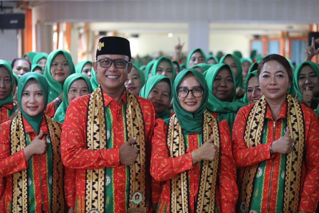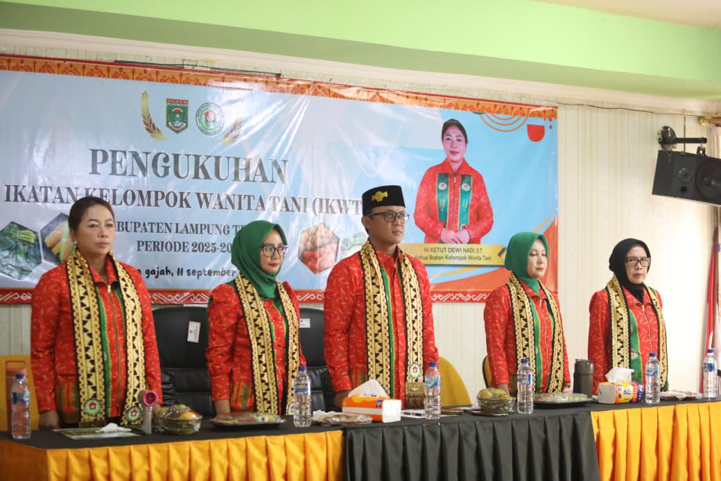 Bupati Lampung Tengah, Ardito Wijaya, secara resmi melantik Ketua Ikatan Kelompok Wanita Tani (IKWT) Kabupaten Lampung Tengah, Ni Ketut Dewi Nadi Komang Koheri, beserta jajaran pengurusnya. Pelantikan tersebut berlangsung di Aula Bandiklatda Kota Gajah, pada Kamis (11/09/2025). Hadir dalam acara tersebut Ketua TP PKK Lampung Tengah, Indria Sudrajat Ardito Wijaya, Ketua Dharma Wanita Persatuan Lampung Tengah, dr. Eva Dwiana Welly Adi Wantra, para Staf Ahli Bupati, Asisten, serta Kepala Perangkat Daerah terkait di lingkungan Pemerintah Kabupaten Lampung Tengah. Dalam sambutannya, Bupati Ardito Wijaya menyampaikan apresiasi dan harapannya kepada pengurus IKWT yang baru dilantik. Menurutnya, organisasi ini memiliki peran strategis dalam mendukung sektor pertanian sekaligus meningkatkan kesejahteraan keluarga petani. “Melalui IKWT, saya berharap para ibu-ibu kelompok tani dapat lebih berdaya, mandiri, serta aktif dalam mendukung ketahanan pangan di daerah. IKWT juga diharapkan mampu menjadi mitra pemerintah dalam memperkuat perekonomian keluarga, sekaligus mendorong pemberdayaan perempuan di Lampung Tengah,” ujar Bupati Ardito. Sementara itu, Ketua IKWT Kabupaten Lampung Tengah, Ni Ketut Dewi Nadi Komang Koheri, menyampaikan rasa terima kasih atas kepercayaan yang diberikan. Ia berkomitmen untuk menjalankan amanah ini dengan sebaik-baiknya demi kemajuan organisasi dan kesejahteraan perempuan tani. “Kami siap bekerja sama dengan pemerintah daerah, serta seluruh elemen masyarakat untuk menguatkan peran perempuan tani. Harapan kami, IKWT dapat menjadi wadah yang benar-benar dirasakan manfaatnya oleh seluruh kelompok tani di Lampung Tengah, khususnya dalam peningkatan kapasitas, kemandirian, dan daya saing perempuan,” ungkap Ni Ketut Dewi. (Diskominfotik Lampung Tengah)
