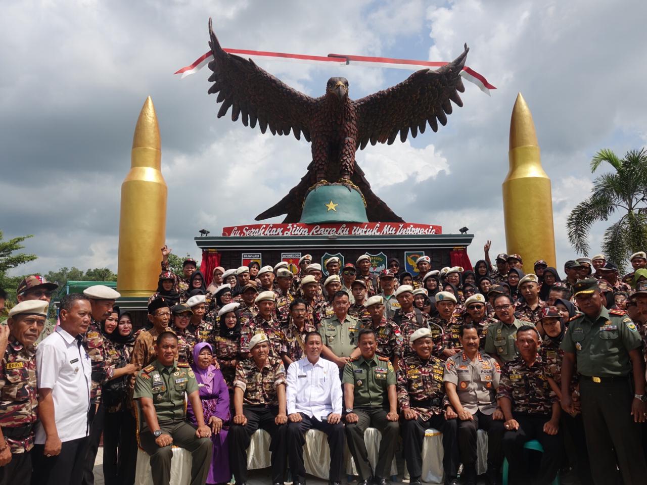 TERUSAN NUNYAI, Peresmian Monumen Transad Garuda Sakti yang berada di kampung Bandar Sakti Kecamatan Terusan Nunyai berlangsung meriah. Acara yang digelar pada Rabu, 15 Januari 2020 di Lapangan Transad Bandar Sakti dihadiri oleh unsur forkopimda Kabupaten Lampung Tengah,Kadis Kominfo Lampung Tengah, Komandan Korem 043 Garuda Hitam Kolonel Inf Taufik Hanafi, Kepala SPN Kombes Pol Sismulyono SH MH , dan Forum Komunikasi Putra Putri Purnawirawan TNI/Polri (FKPPI). Komandan Korem 043 Garuda Hitam Kolonel Inf Taufik Hanafi dalam sambutannya menyampaikan apresiasi nya terhadap pembangunan monumen Transad di Kampung Bandar Sakti ini. Beliau mengatakan bahwa monumen Transad ini dibangun dengan gotong royong dan membuktikan bahwa FKPPI memiliki rasa solidaritas tinggi. Monumen Transad Garuda Sakti melambangkan kekuatan, kegagahan,dan kejelian dan sekaligus menjadi lambang bakti pengingat akan sejarah bangsa. "Kita tidak boleh melupakan sejarah,dan jasa para purnawirawan,dan mari selalu tingkatkan solidaritas," ujar Kol Inf Taufik Hanafi Sementara itu Kadis Kominfo Kabupaten Lampung Tengah Iman Saputra yang mewakili Bupati Lampung Tengah Loekman Djoyosoemarto saat membacakan sambutan Bupati Lampung Tengah Loekman Djoyosoemarto menyampaikan bahwa Monumen Transad Garuda Sakti adalah sarana untuk generasi muda mengingat kembali dan melestarikan sejarah berdirinya kampung Bandar Sakti. Selain itu, Monumen Transad ini juga menjadi simbolisasi tekad penyemangat untuk bersatu padu dalam bingkai kebhinekaan guna membangun Lampung Tengah. Masih disampaikan Iman, FKPPI diajak untuk mewujudkan Lampung Tengah menjadi wilayah amab maju adil sejahtera dan berkelanjutan bagu masyarakat Lampung Tengah. Iman Saputra menambahkan bahwa kita harus bertekad bangkit membangun diri dengan nilai moral yang lebih baik dan terus berupaya bergerak maju dalam berbagai aspek pembangunan. " Mari kita sematkan semangat membangun Lampung Tengah," ujar Iman Saputra. Acara diakhiri dengan pengguntingan pita dan penandatangan prasasti sebagai tanda diresmikan nya Monumen Transad kampung Bandar Sakti. (DISKOMINFO LAMPUNG TENGAH)