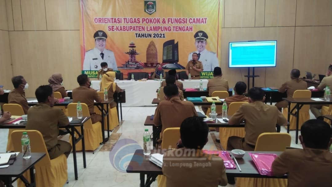 Bupati Lampung Tengah Musa Ahmad yang dalam hal ini diwakili oleh Sektretaris Daerah Kabupaten Lampung Tengah Nirlan. S.H., M.M didampingi Asisten Bidang Pemerintahan dan Kesra Adi Sriyono S.Sos membuka acara Kegiatan Orientasi Tugas Pokok dan Fungsi (TUPOKSI) Camat Se-Kabupaten Lampung Tengah di Hotel BBC Bandar Jaya Kec. Terbanggi Besar. (Senin, 8/11/2021) Bupati lampung Tengah mengapresiasi dan menyambut baik atas diadakanya acara Orientasi Tugas Pokok dan Fungsi Camat Se-Kabupaten Lampung Tengah sebagai perpanjangan tangan dari Pemerintah Kabupaten Lampung Tengah. Camat merupakan pelimpahan sebagai kewenangan dari Bupati Lampung Tengah yang bersama-sama melakukan kegiatan untuk mendukung roda pemerintahan serta pelayanan kepada masyarakat. Sebagai organisasi yang berhadapan langsung dengan masyarakat, Pemerintah Kecamatan memiliki peran penting dalam memperpendek mata rantai birokrasi dan mempermudah pelayanan kepada masyarakat yang merupakan prioritas utama Pemerintah Kabupaten Lampung Tengah dan sekaligus dapat melaksanakan tugas pokok dan fungsi dengan efektif dan efisien sehingga terwujud birokrasi yang melayan masyarakat dalam percepatan pembangunan yang menjadi prioritas sehingga kita bersama dapat berjuang untuk menjadikan Kabupaten Lampung Tengah sebagai kabupaten terbaik di Provinsi Lampung serta mewujudkan Lampung Tengah BERJAYA. (Diskominfo Kabupaten Lampung Tengah)