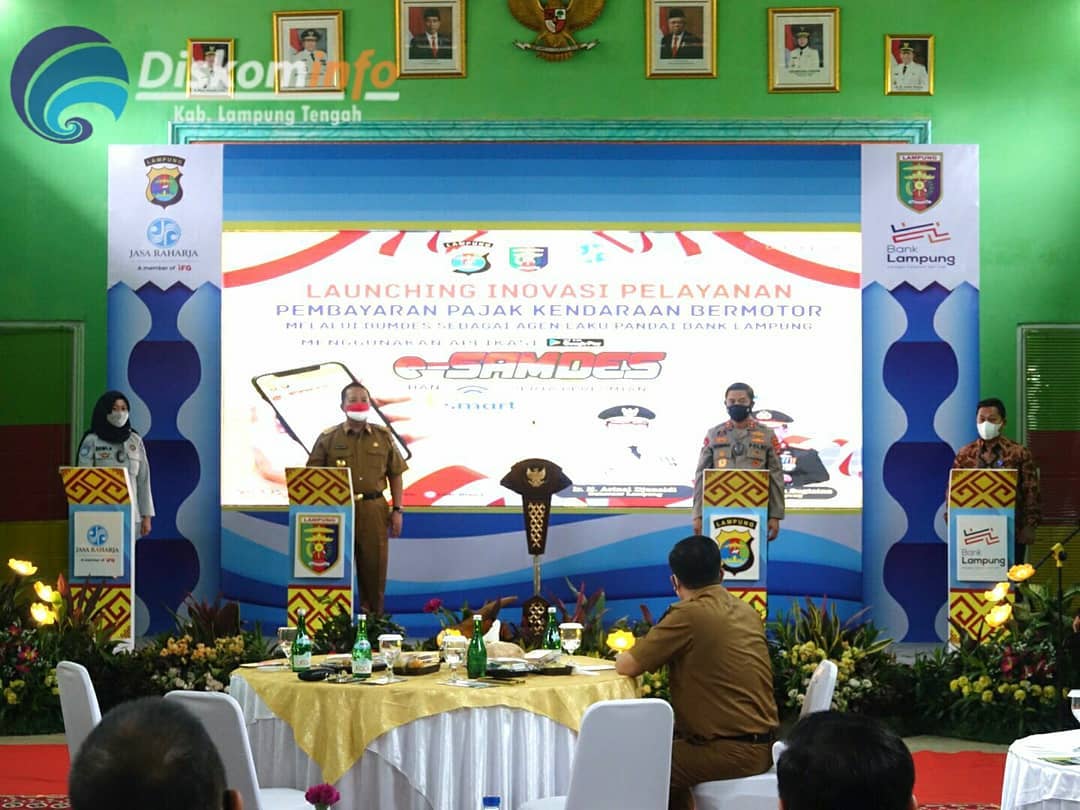 Bupati Lampung Tengah Musa Ahmad menghadiri Launching Samsat Desa e-Samdes dan L-Smart juga resmikan Desa Mart di Kampung Wates Kecamatan Bumi Ratu Nuban Lampung Tengah pada hari Selasa 14 September 2021. Program tersebut di Launching langsung oleh Gubernur Lampung Arinal Djunaidi, Kapolda Lampung, Dirut PT. Jasa Raharja Provinsi Lampung, Dirut Bank Lampung serta para tamu undangan. Bupati Lampung Tengah Musa Ahmad menyambut baik dengan adanya program ini yang mana merupakan yang perdana di Provinsi Lampung, Kabupaten Lampung Tengah yang menjadi percontohan diharapkan bisa memanfaatkan program ini dengan baik, sehingga masyarakat Lampung Tengah tidak perlu lagi jauh-jauh untuk membayar pajak, cukup memanfaatkan program ini dan Bupati berharap di akhir tahun ini seluruh Kecamatan se-Kabupaten Lampung Tengah bisa menggunakan Aplikasi e-Samdes ini. Kapolda Lampung Irjen Pol Hendro Sugiyatno mengatakan penerapan e-Samdes ini merupakan suatu keniscayaan yang harus di bangun pemerintah, selama ini pemerintah menuntut masyarakat untuk taat membayar pajak tepat waktu, namun jarak tempuh mayarakat memang menjadi salah satu alasan untuk tidak membayar pajak, semoga dengan adanya e-Samdes ini bisa menjadi solusi masyarakat untuk taat dalam membayar pajak. Sementara itu Gubernur Lampung Arinal Djunaidi mengatakan Pajak Kendaraan Bermotor merupakan penyumbang tertinggi penerimaan daerah dalam sektor pajak dan dalam peningkatan Pembayaran PKB ( Pajak Kendaraan Bermotor) perlu adanya inovasi-inovasi yang mempermudah masyarakat terutama masyarakat yang jauh dari samsat di daerahnya, hadirnya e-Samdes di Provinsi Lampung merupakan program yang selaras dengan salam satu program Gubenur Lampung yaitu Smart Village atau Desa Cerdas Berbasis Digital. Pada acara tersebut juga diresmikan Bumdes yaitu Desa Mart, yang mana menjual produk-produk olahan masyarakat sekitar yang dikelola langsung oleh kampung dan dijual di “Desa Mart” sehingga dengan adanya usaha milik kampung tersebut bisa membuka lapangan kerja bagi masyarakat sekitar dan meningkatkan perekonomian. (Diskominfo Kabupaten Lampung Tengah)