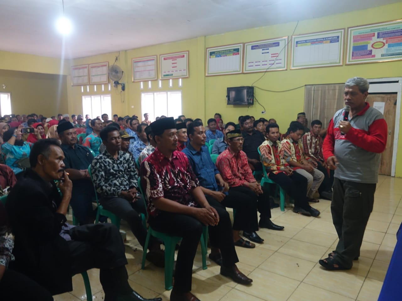Lampung Tengah - Rapemda 92,8 fm, Bupati Lampung Tengah (Lamteng) Loekman Djoyosoemarto, bersilaturahmi dengan aparatur pemerintahan Kampung se-Kecamatan Bangunrejo, di Balai Kampung Sinar Seputih, Senin (18/11/2019). Bupati Loekman menegaskan, bahwa menjadi seorang pemimpin itu harus bisa membuat yang jelek menjadi baik. Sehingga roda pemerintahan, baik di kabupaten hingga kampung bisa berjalan dengan baik dan berkembang. Pihaknya juga meminta aparatur kampung di Kecamatan Bangunrejo untuk bekerja dengan baik dan profesional, serta meningkatkan pelayanan kepada masyarakat. "Itu namanya pemimpin. Kita tunjukan kemampuan kita. Sudah banyak penghargaan yang kita peroleh, ini bukti bahwa kita mampu memimpin Lamteng. Harapan saya, aparatur kampung di Kecamatan Bangunrejo terus membangkitkan semangat gotong royong, untuk bersama-sama membangun Kabupaten Lampung Tengah kedepan," ujarnya. Loekman mengungkapkan, program gotong royong yang digulirkan pemerintah daerah telah membuahkan hasil yang memuaskan, dengan diraihnya beberapa prestasi dan penghargaan tingkat nasional. Sehingga, Kabupaten Lampung Tengah dicanangkan oleh Presiden Republik Indonesia Ir. Joko Widodo (Jokowi) untuk menjadi daerah percontohan dibidang pertanian organik tingkat nasional. ( DISKOMINFO LAMPUNG TENGAH )
