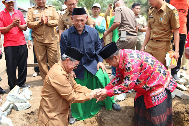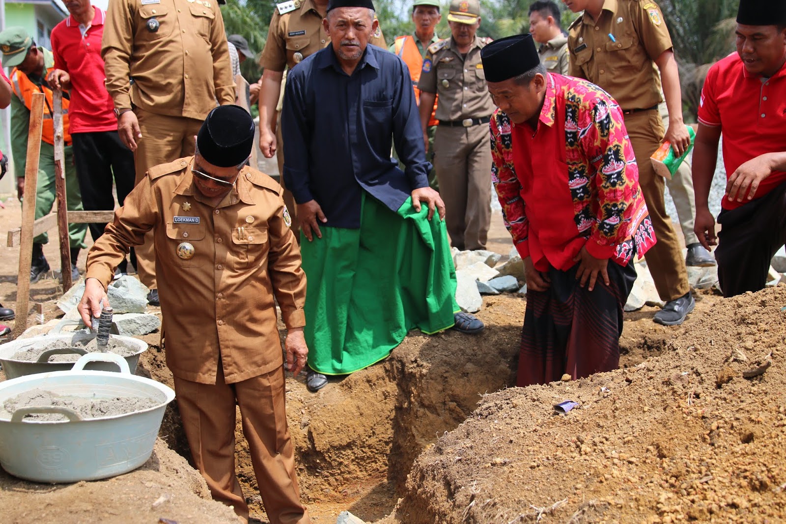 Usai memberikan sambutannya dengan didampingi Camat Anak Tuha Risky Augusta dan pengasuh Pondok Pesantren Bustanul Ulum Bupati Lampung Tengah Loekman Djoyosoemarto langsung melakukan peletakan batu pertama pembangunan mushola Bustanul Ulum ini ( DISKOMINFO LAMPUNG TENGAH )