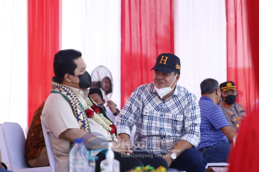Menteri Badan Usaha Milik Negara (BUMN) Erick Thohir melakukan kunjungan kerja ke Kabupaten Lampung Tengah pada Minggu 17 Oktober 2021. Erick Thohir tiba di Lampung Tengah sekita pukul 09.00 WIB dan disambut oleh Bupati Lampung Tengah Musa Ahmad beserta jajarannya. Erick Thohir mengawali kunjungannya di Lampung Tengah bertemu dengan UMKM di Lampung Tengah dan memberikan bebetapa arahan terkait dengan program-program pemerintah yang memang akan mengutamakan keberadaan UMKM karena UMKM menjadi salah satu penopang ekonomi kerakyatan di Indonesia. Erick Thohir juga meresmikan lapangan voli yang telah direhab dan berpesan agar masyarakat Lampung Tengah semua berlomba-lomba untuk berinovasi di berbagai bidang agar membangun perekonomian yang sempat terhambat akibat pandemi covid-19. Menteri BUMN berpesan agar masyarakat dapat memanfaatkan lahan pekarangan yang tidak terpakai agar bisa dijadikan sumber perekonomian baru dan bisa untuk di tanamkan tanaman hidrophonik sayur-mayur serta buah-buahan lainnya. "Seperti contoh Kota Bandung mereka bisa menanam tanaman hidrophonik (Melon Jepang) yang omsetnya bisa mencapai ratusan juta dengan lahan yang tidak luas dan nantinya bisa mendapatkan penghasilan tambahan bagi warga sekitar, dan saya juga berharap agar Kabupaten Lampung Tengah bisa lebih maju serta dapat menjadi kabupaten yang bisa diandalkan di Provinsi lampung apalagi dengan dipimpin oleh Bupati Musa Ahmad", pungkas Menteri Erick Thohir. (Diskominfo Kabupaten Lampung Tengah)