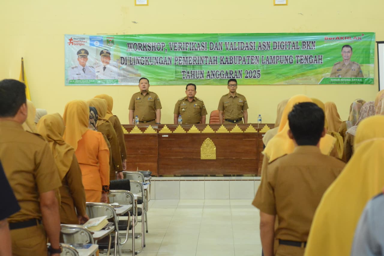Pemerintah Kabupaten Lampung Tengah melalui Badan Kepegawaian dan Pengembangan Sumber Daya Manusia (BKPSDM) menggelar Workshop Verifikasi dan Validasi ASN Digital Badan Kepegawaian Negara (BKN) di Aula BKPSDM, Selasa (12/08/2025). Kegiatan ini dibuka secara resmi oleh Asisten Administrasi Umum Setdakab Lampung Tengah, Eko Dian Susanto, yang mewakili Bupati Lampung Tengah Ardito Wijaya. Dalam sambutannya, Eko Dian Susanto menyampaikan bahwa transformasi digital di bidang kepegawaian menjadi langkah penting untuk mewujudkan birokrasi yang efektif, efisien, dan akuntabel. “Verifikasi dan validasi data ASN berbasis digital adalah pondasi penting dalam membangun sistem pemerintahan modern. Dengan data yang akurat dan terintegrasi, pelayanan publik dapat dilakukan lebih cepat dan tepat sasaran,” ujarnya. Workshop ini diikuti oleh kasubag umum dan kepegawaian dari berbagai perangkat daerah di lingkungan Pemerintah Kabupaten Lampung Tengah. Materi yang dibahas meliputi tata cara verifikasi dan validasi data ASN di aplikasi ASN Digital BKN, integrasi dengan sistem kepegawaian daerah, serta strategi menjaga keamanan dan kerahasiaan data. Melalui kegiatan ini, diharapkan para pengelola kepegawaian di masing-masing OPD dapat memahami mekanisme pembaruan data secara digital, sehingga proses administrasi kepegawaian menjadi lebih transparan dan dapat dipertanggungjawabkan. Sekretaris BKPSDM Lampung Tengah Akhmad Riyandi dalam kesempatan terpisah menegaskan, pihaknya akan terus melakukan pendampingan kepada OPD dalam proses implementasi ASN Digital. “Kita ingin memastikan seluruh data ASN di Lampung Tengah sudah valid, terverifikasi, dan sesuai dengan ketentuan BKN,” katanya. Workshop ini menjadi salah satu langkah nyata Pemerintah Kabupaten Lampung Tengah dalam mendukung program reformasi birokrasi dan percepatan transformasi digital yang dicanangkan pemerintah pusat. (Diskominfotik Lampung Tengah)