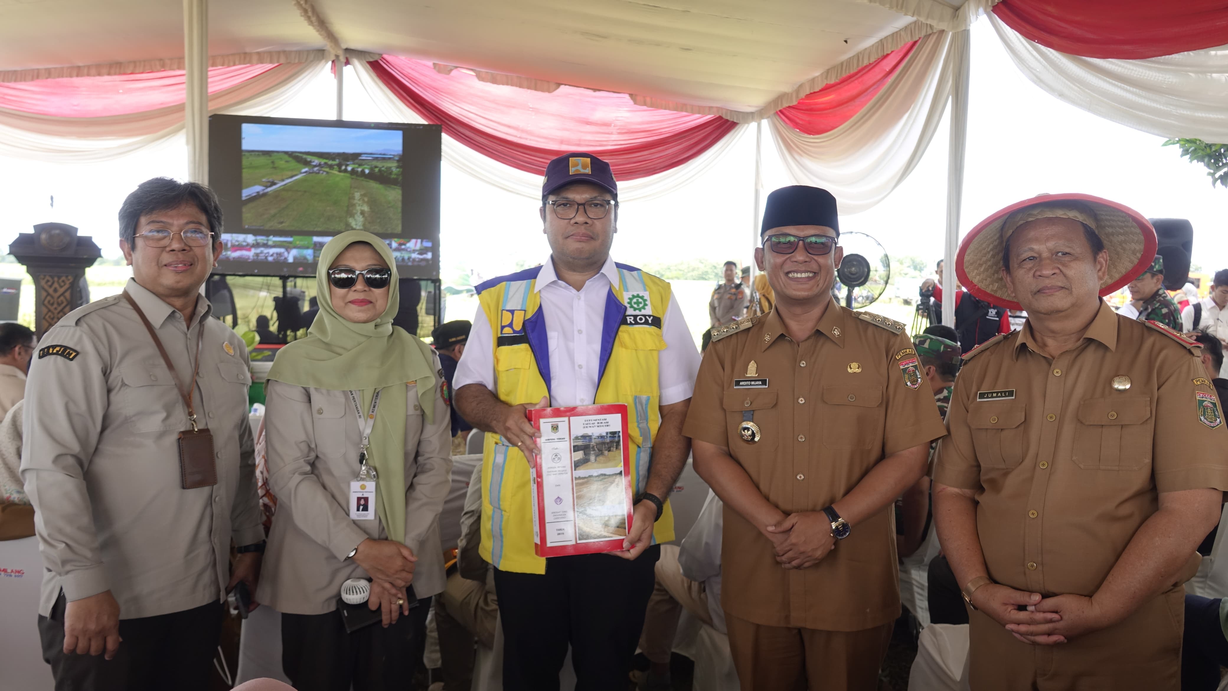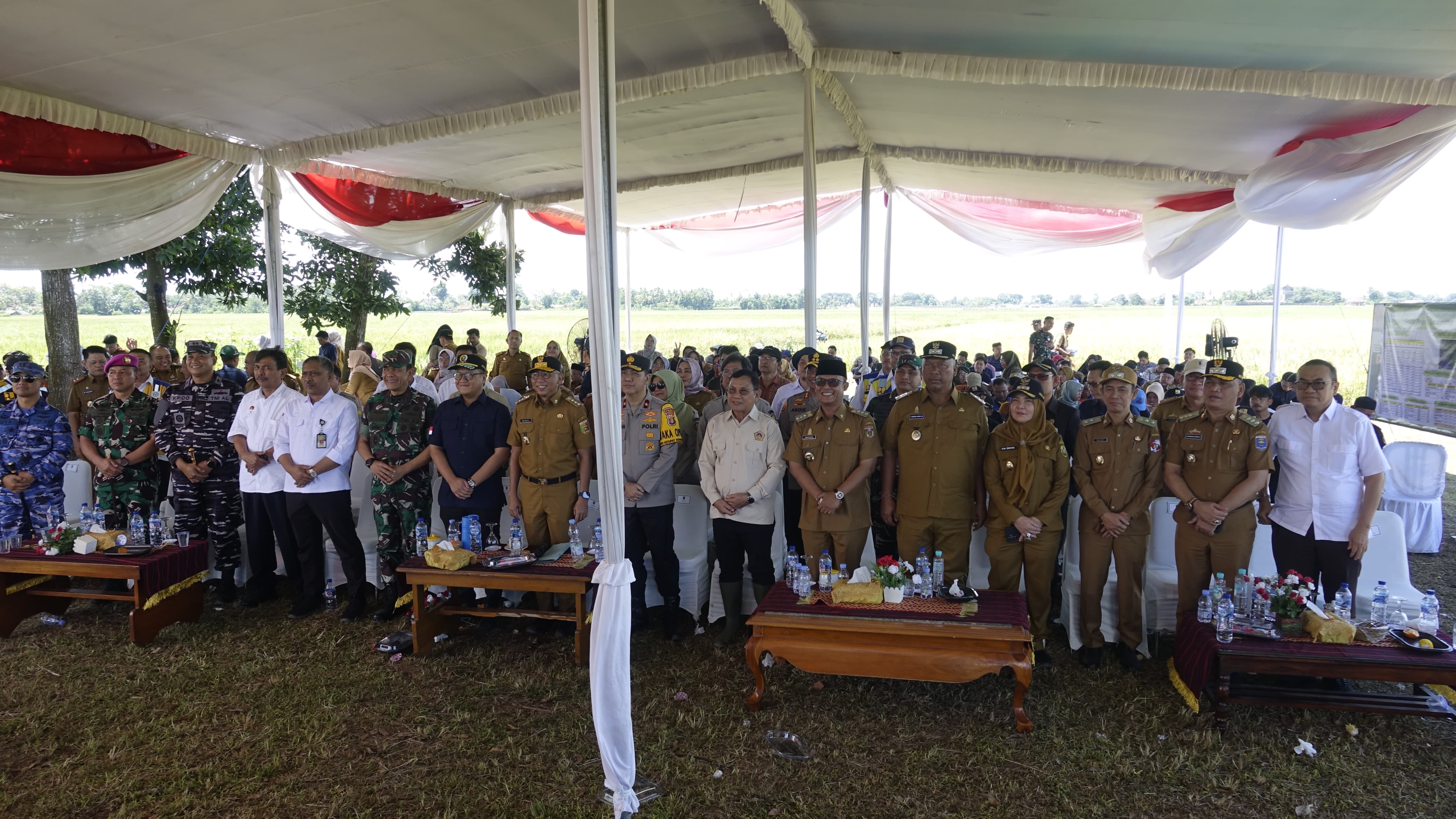 Kabupaten Lampung Tengah menjadi pusat Pemerintah Provinsi Lampung dalam acara Panen Raya Padi Serentak 14 Provinsi di Indonesia. acara ini berlangsung di Kelurahan Adipuro, Kecamatan Trimurjo, Senin (7/4/2025). Bupati Lampung Tengah dr. Hi. Ardito Wijaya, M.K.M. bersama Wakil Bupati I Komang Koheri, S.E. mendampingi Gubernur Lampung Rahmat Mirzani Djausal, S.T., M.M. yang secara langsung memimpin panen di tingkat Provinsi Lampung. Hadir juga dalam acara tersebut, antara lain, Anggota DPR RI Ir. Hanan A. Rozak, Direktur Jendral Holtikultura Kementerian Pertanian RI Dr. Ir. Muhammad Taufik, Forkopimda Provinsi Lampung, Wali Kota Bandar Lampung Eva Dwiana, Wali Kota Metro Bambang Iman Santoso, Wakil Bupati Lampung Utara Romli, dan Forkopimda Kabupaten Lampung Tengah. Bupati Lampung Tengah dr. Ardito Wijaya dalam sambutannya mengucapkan selamat datang kepada Gubernur Lampung Rahmat Mirzani Djausal di Kabupaten Lampung Tengah yang siap berbenah untuk Lampung Tengah Maju, Berdaya Saing, Sejahtera, Berkelanjutan, Adil dan Makmur serta siap mendukung Lampung Maju dan Indonesia Emas. Yang tentunya selaras dengan Asta Cita Presiden Prabowo Subianto, yaitu memantapkan sistem pertahanan keamanan negara dan mendorong kemandirian bangsa melalui swasembada pangan, energi, air, ekonomi kreatif, ekonomi hijau dan ekonomi biru. Lebih lanjut, Bupati dr. Ardito Wijaya mengatakan menurut data BPS, capaian produksi padi tahun 2024 di Lampung Tengah mencapai 595.377 ton gabah kering giling, dengan luas panen 107.705 Ha. Target luas tambah tanam Kabupaten Lampung Tengah tahun 2025 adalah 206.000 Ha dan target produksi gabah diharapkan mencapai 1 juta ton. Untuk lokasi panen raya kelurahan Adipuro yang dilakukan panen seluas 326 Ha dengan produktivitas 7,2 ton/ha maka perkiraan total produksi padi dikelurahan Adipuro sebanyak 2.347 ton gabah, dengan tingkat harga jual gabah kering panen Rp. 6.500/kg. Kelurahan Adipuro juga memiliki fasilitas alat dan mesin pertanian berupa traktor roda empat sebanyak 1 unit, traktor roda dua sebanyak 16 unit dan combine harvester sebanyak 1 unit. Dalam kesempatan tersebut juga, Bupati dr. Ardito Wijaya melaporkan kepada Gubernur Rahmat Mirzani Djausal permasalahan di Lampung Tengah berkaitan dengan jadwal air yang masih bergilir dan debit air yang belum maksimal dikarenakan sedimentasi dan kondisi bangunan jaringan irigasi yang mengalami kerusakan. Mohon kiranya dapat diberikan solusi atas permasalahan tersebut. (Diskominfotik Lampung Tengah)