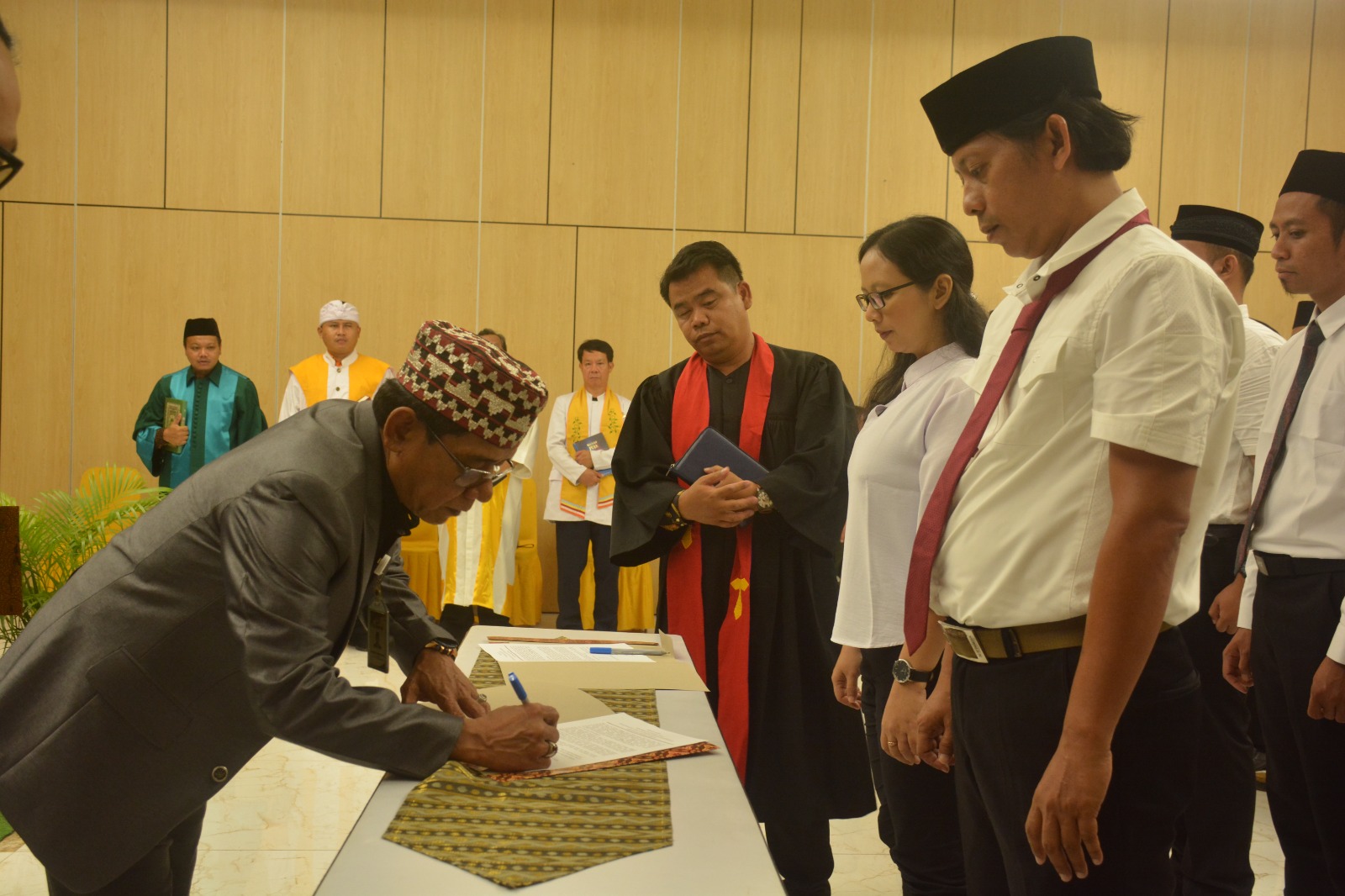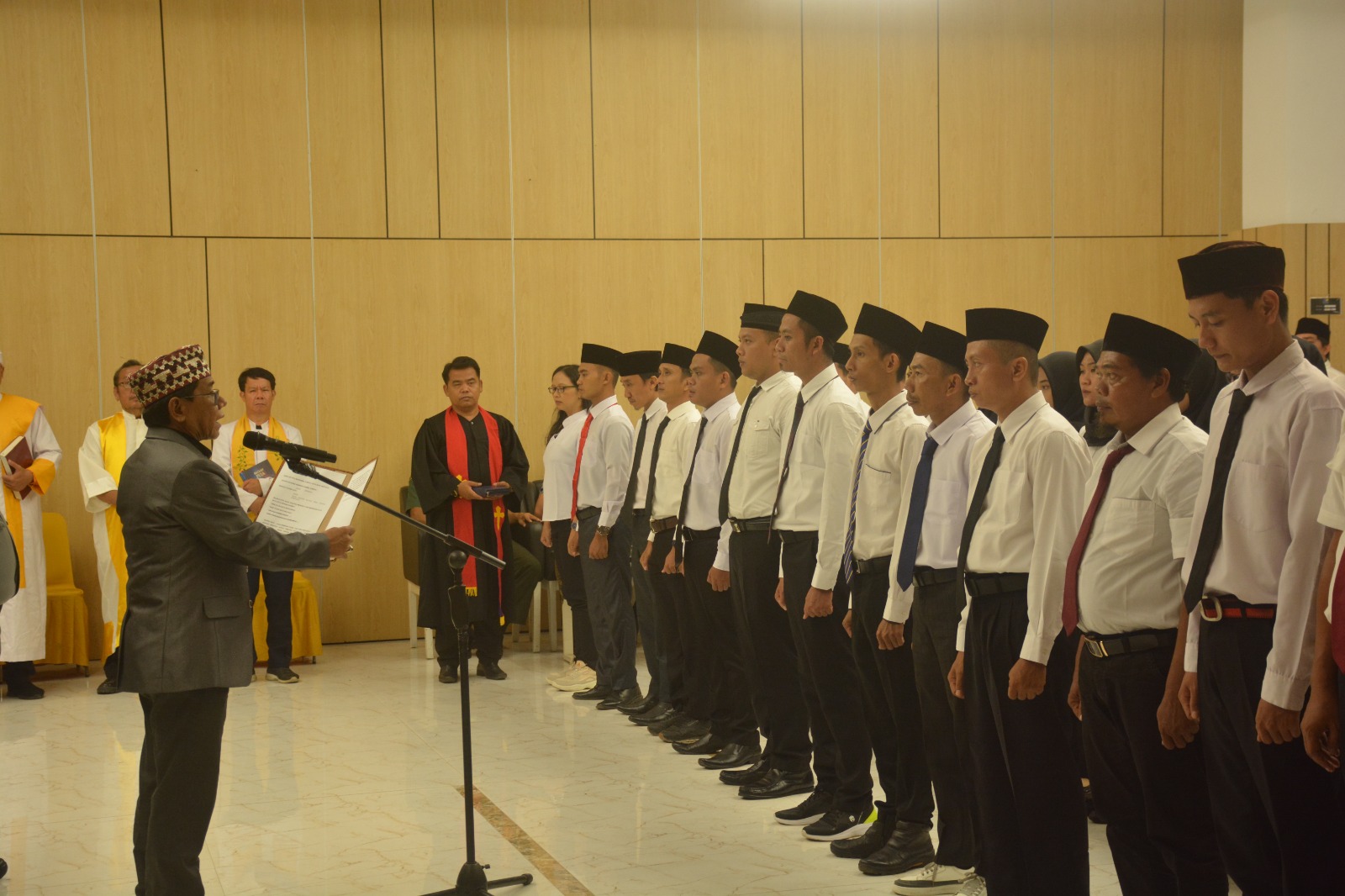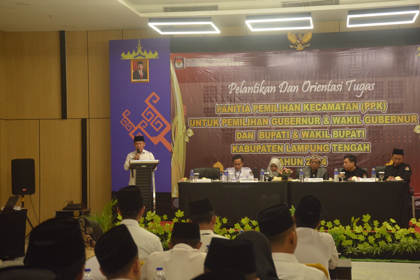 Staf Ahli bupati Bidang Pemerintahan Hukum dan Politik, Zulfikar Irwan, S sos.M.M Mewakili Bupati Lampung Tengah, Musa Ahmad, S.Sos.M.M. menghadiri Pelantikan Anggota Panitia Pemilihan Kecamatan (PPK) Kabupaten Lampung Tengah Untuk Pemilihan Gubernur Provinsi Lampung dan Bupati Kabupaten Lampung Tengah Tahun 2024 Hari Kamis, 16 Mei 2024 di Hotel BBC Bandar Jaya Kabupaten Lampung Tengah. Hadir dalam kegiatan tersebut." Kepala Kesbangpol. Unsur Forkopimda. dan dinas terkait. Kita tentu sepakat, bahwa para anggota PPK Kabupaten Lampung Tengah, mempunyai peranan yang sangat penting dan strategis sebagai ujung tombak penyelenggaraan pemilihan kepala daerah bulan november nanti, agar terlaksana dengan baik, lancar, aman, tertib , dan demokratis. Untuk itu kami berharap, kepada para anggota PPK yang telah dilantik agar dapat menyiapkan diri dengan baik dalam melaksanakan tugas dengan memahami seluruh peraturan perundang-undangan kepemiluan, sebab pilkada november mendatang, harus berjalan dengan sukses, jangan sampai timbul konflik dikarenakan kurangnya integritas dari anggota. Dan dalam menjalankan tugas nanti, sangat mungkin anggota PPK menghadapi banyak tantangan, bahkan ancaman yang sangat mungkin menggoyahkan integritas sebagai penyelenggara pemilu. Untuk itu, anggota PPK harus memiliki komitmen tinggi, sebab anggota PPK mempunyai tanggung jawab untuk menjaga stabilitas sosial politik dengan cara bersifat independent, tidak memihak, tidak diskriminatif, jujur, dan adil serta berpedoman pada tahapan dan mekanisme yang telah ditetapkan. disisi lain , Ketua KPU Lampung Tengah. Irawan Indra Jaya. SKM. Menyampaikan apresiasi dan terimakasih kepada Pemerintah daerah Lampung Tengah yang telah membatu terkait dengan anggaran. (Diskominfotik Lampung Tengah)