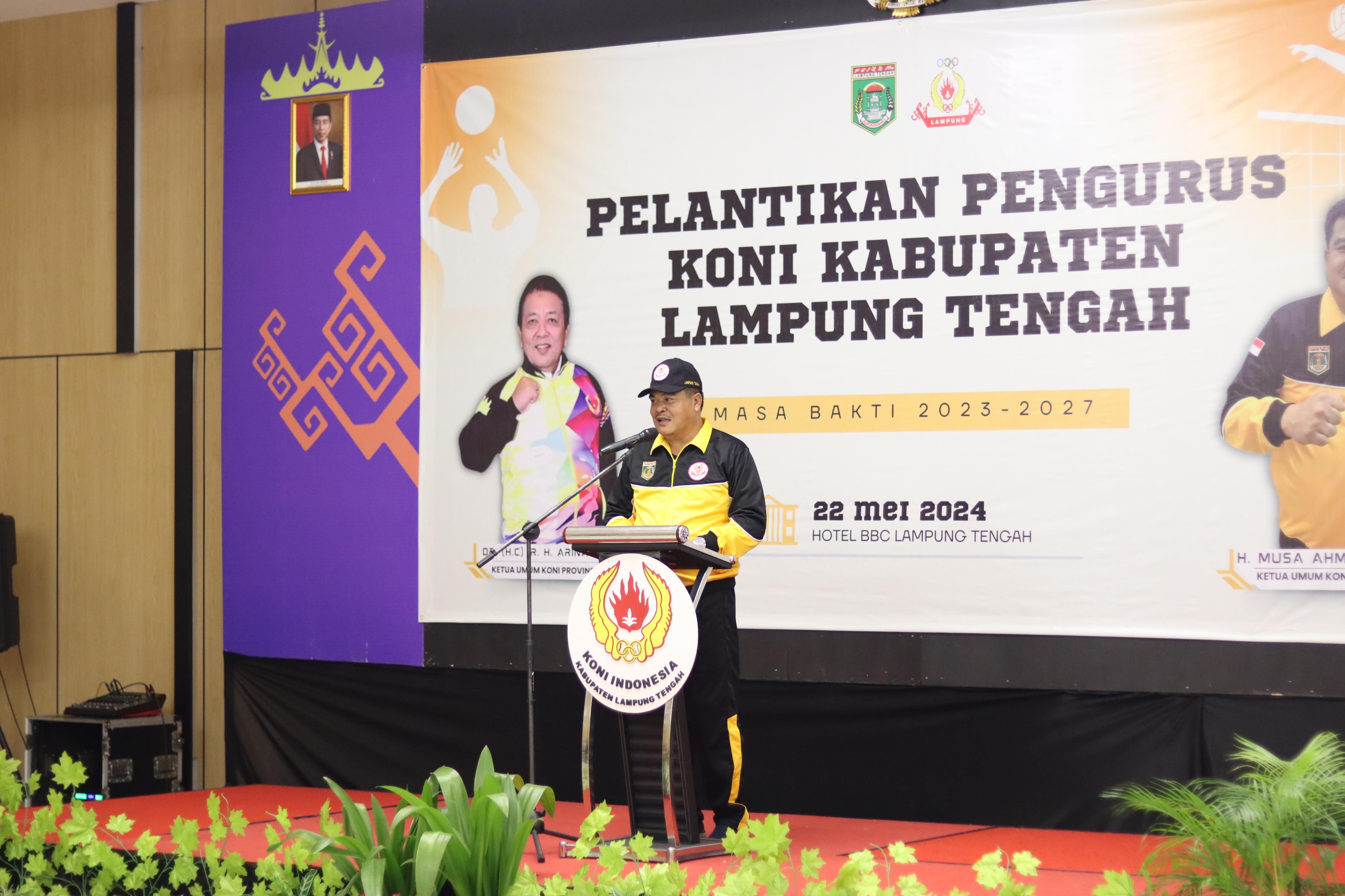 Pengurus Komite Olahraga Nasional Indonesia Kabupaten Lampung Tengah Masa Bakti 2023 - 2027 resmi di lantik oleh pengurus KONI Lampung pada hari Rabu 22 Mei 2024. Dalam kesempatan tersebut Bupati Lampung Tengah Musa Ahmad resmi menakhodai KONI Lampung Tengah yang dimana dilantik langsung oleh Ketua Harian KONI Brigjen TNI (Purn) Amalsyah Tarmizi mewakili Ketua KONI Lampung Arinal Djunaidi. Dalam kesempatan tersebut turut hadir pengurus KONI Lampung, Forkopimda, Kepala Perangkat Daerah, Ketua Cabor se Lampung Tengah serta tamu undangan. Dalam sambutannya Ketua KONI Lampung Tengah yang juga Bupati Lampung Tengah Musa Ahmad mengatakan KONI Lampung Tengah kedepan harus berbuat yang terbaik untuk dunia olahraga di Kabupaten Lampung Tengah, Musa Ahmad juga mengucapkan Terima kasih kepada Ketua Cabang Olahraga yang telah mempercayai untuk memimpin KONI Lampung Tengah kedepan dan amanah yang dipercayai ini akan dilaksanakan bersama seluruh pengurus dengan semaksimal mungkin. Musa juga berharap di kepengurusan saat ini bisa melahirkan prestasi olah raga di tingkat Provinsi, Nasional dan Dunia. Ketua KONI juga menyatakan Pekan olahraga Provinsi ( Porprov) di tahun 2026 Lampung Tengah siap menjadi tuan rumah, Untuk itu Musa mengajak seluruh pemangku kepentingan dan KONI Lampung Tengah bekerja keras untuk mewujudkan hal tersebut. Sementara itu Sambutan Ketua Harian KONI Lampung Brigjen TNI (Purn) Amalsyah Tarmizi yang Mewakili Ketua Koni Lampung Arinal Djunaidi yakin di bawah kepemimpinan Ketua KONI Lampung Tengah Musa Ahmad kedepan dunia olahraga di Lampung Tengah akan semakin berjaya dan berprestasi. mengenai kesanggupan Lampung Tengah menjadi tuan rumah Porprov 2026 nanti , akan dibahas di Rakeprov KONI dibulan Juni 2024. Melihat keseriusan dan pembangunan sarana olahraga di Lampung Tengah, Amalsyah mengapresiasi langkah yang dilakukan oleh Bupati Musa Ahmad dan jajaran yang tentunya menjadi modal awal dalam menyiapkan diri menjadi tuan rumah Porprov 2026. Diakhir sambutannya Amalsyah berpesan untuk melakukan pembinaan dan mencari para atlet berprestasi mulai dari tingkat Kampung dengan melaksanakan acara pekan olahraga kecamatan yang tentunya akan melahirkan atlet yang unggul dan berprestasi untuk mengharumkan nama Kabupaten Lampung Tengah di tingkat Provinsi, Nasional dan Dunia. (Diskominfotik Lampung Tengah)