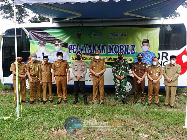 Lampung Tengah - Peluncuran “ Pelayanan Mobile Vaksin “ di Kabupaten Lampug Tengah resmi di luncurkan Bupati Lampung Tengah Musa Ahmad di Taman Gotong Royong Berjaya, selasa 13 Juli 2021. Hadir dalam kesempatan tersebut Forkopimda, Asisten dan Kepala Perangkat Daerah terkait. Pelayanan Mobile Vaksin tersebut nantinya akan berada di kecamatan-kecamatan yang ada di Lampung Tengah dan sasarannya membantu masyarakat terutama lansia yang ingin vaksin namun tidak bisa hadir ke puskesmas terdekat untuk itu hadir Pelayanan Mobile Vaksin yang akan langsung memberikan vaksin ke rumah rumah warga. Pelayanan Mobile vaksin ini merupakan yang pertama di luncurkan di Provinsi Lampung. Bupati Lampung Tengah Musa Ahmad mengatakan pelayanan ini kedepan membantu masyarakat yang ingin melakukan vaksin terutama lansia, Bupati berharap seluruh masyarakat di Lampung Tengah untuk melakukan vaksin di Puskesmas atau tempat - tempat yang ditunjuk pemerintah yang melaksanakan vaksin dan dalam pelaksanannya tetap menerapkan protokol kesehatan. (Diskominfo Kabupaten Lampung Tengah)