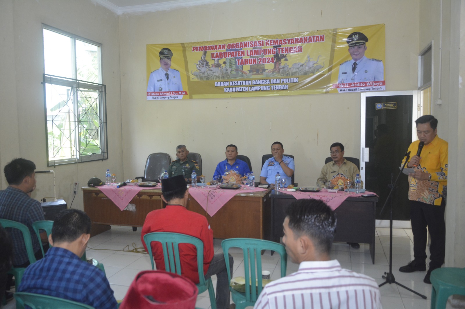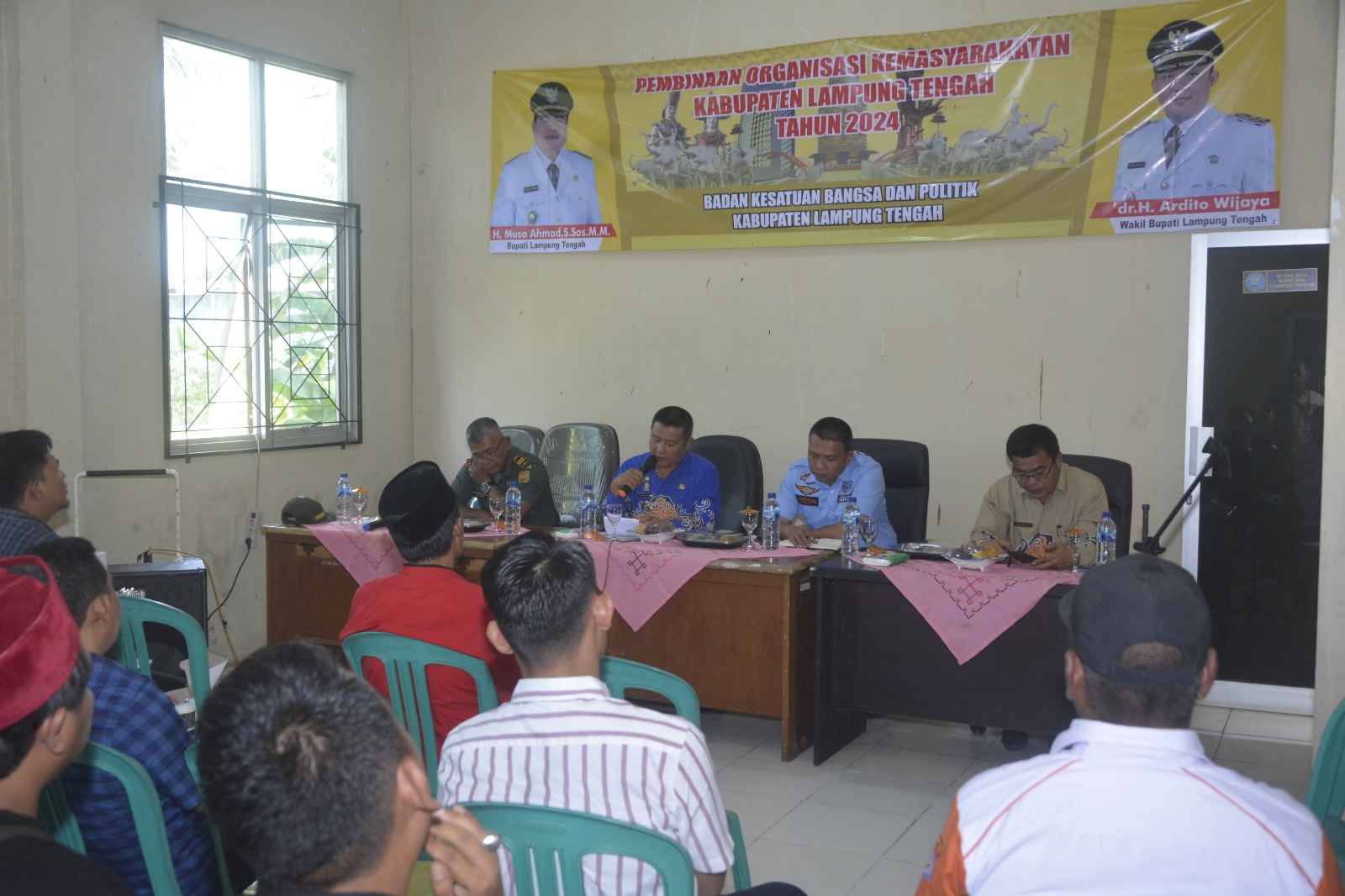 Bupati Lampung Tengah Musa Ahmad S. Sos, MM. yang dalam hal ini diwakili Kepala Badan Kesbangpol Yasir Asromi AP, MSI. membuka acara kegiatan pembinaan dan monitoring Organisasi Kemasyarakatan Kabupaten Lampung Tengah Tahun 2024 bertempat di Ex Aula Gedung BNK Seputih Jaya, Kamis 19 September 2024. Hadir dalam kesempatan tersebut Kanit Sosbud Satintelkam Polres Lampung Tengah Bripka Andi Ferdinan, Pabung Kodim 0411/KM Mayor Inf Agus dan Danramil Trimurjo Letu Inf Sudarto. Dalam laporannya ketua panitia mengatakan tujuan kegiatan ini adalah dalam rangka meningkatkan pengetahuan dan wawasan para pengurus/anggota Ormas sesuai dengan peraturan perundang-undangan yang berlaku. Upaya memperbanyak kerjasama yang di lakukan antara Pemerintah Daerah dengan Organisasi Kemasyarakatan serta pengelola keseimbangan, keselarasan dan keharmonisan antara kebebasan berorganisasi dan kewajiban dalam berorganisasi sebagaimana diatur konstitusi UUD 1945. Sambutan Bupati Lampung Tengah Musa Ahmad S. Sos, MM. yang dibacakan Kaban Kesbangpol Yasir Asromi mengatakan Organisasi Kemasyarakatan harus menjadi pionir dalam pembangunan Daerah dan siap menjadi agen pembangunan. serta menampilkan wajah Organisasi Kemasyarakatan sebagai pelindung dan pemberi rasa aman kepada masyarakat dan harus selalu tampil kedepan dan tidak hanya berorientasi kepada organisasinya sendiri tetapi juga terasa kiprahnya di Masyarakat. Masyarakat memiliki peran penting dalam meningkatkan partisipasi dan pemberdayaan masyarakat, terutama dalam mengembangkan kesetiakawanan sosial, gotong royong dan toleransi dalam kehidupan bermasyarakat serta menjaga, memelihara dan memperkuat persatuan dan kesatuan bangsa. Lebih lanjut Yasir mengatakan Pemerintah Daerah Kabupaten Lampung Tengah sangat mendukung dan mendorong peran dan aktivitas Organisasi Kemasyarakatan agar dapat menjaga energi dan kerjasama yang baik, guna membantu Pemerintah untuk merumuskan kebijakan yang efektif dan efisien dalam menyikapi berbagai permasalahan sosial kemasyarakatan, mendukung percepatan pembangunan dan kesejahteraan masyarakat Kabupaten Lampung Tengah. Saya berharap Organisasi Kemasyarakatan dapat menjadi garda terdepan dalam mengawal pembangunan Daerah serta dapat memberikan dukungan terhadap pelaksanaan program pembangunan yang dilaksanakan oleh Pemerintah Kabupaten Lampung Tengah sehingga keberadaan Organisasi ini benar-benar dirasakan manfaatnya oleh masyarakat. (Diskominfotik Lampung Tengah)