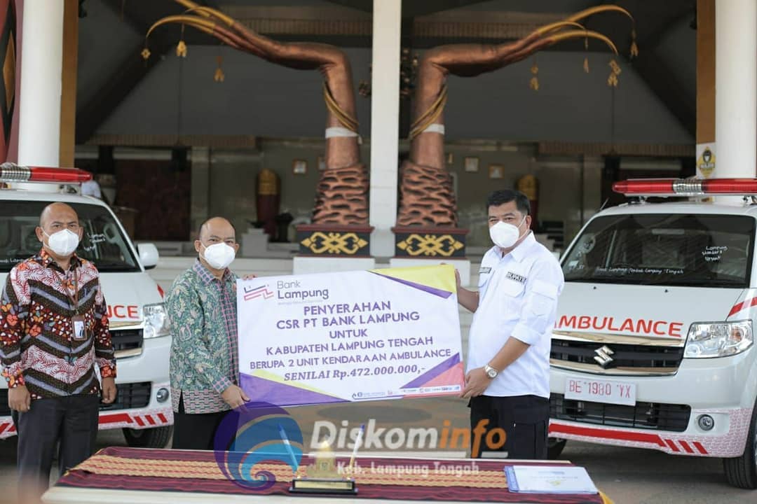 Pemerintah Kabupaten Lampung Tengah Mendapatkan Bantuan Ambulance CSR Bank Lampung yang langsung di serahkan oleh Direktur Operasional Bank Lampung Fahmi Ridho yang di terima oleh Bupati Lampung Tengah Musa Ahmad pada hari Rabu 22 September 2021 di Sesat Agung Nuwo Balak. pada kesempatan itu pula Kepala Cabang Bank Lampung Bandar Jaya, Kepala Perangkat Daerah terkait serta Direktur RSUD Demang Sepulau Raya. Direktur Operasional Bank Lampung Fahmi Ridho mengatakan bantuam CSR Ambulance ini merupakan bentuk komitmen Bank Lampung dalam peduli kepada Pemerintah Kabupaten / Kota di bidang Kesehatan, dengan adanya bantuan ini diharapkan dapat membantu operasional pengantaran pasien yang ada RSUD Demang Sepulau Raya sehingga dapat bermanfaat dan berguna. Selain bantuan 2 Ambulance telah direalisasikan juga bantuan di Lampung Tengah 3 gerobak dorong untuk pengambilan sampah di Lingkungan Masyarakat. Bupati Lampung Tengah Musa Ahmad mewakili Pemerintah Lampung Tengah mengucapkan terima kasih kepada Bank Lampung yang sudah peduli di Bidang Kesehatan dalam pemberian bantuan CSR Ambulance di Kabupaten Lampung Tengah, dan 2 Ambulance tersebut akan di peruntukan untuk RSUD Demang Sepulau Raya dalam rangka meningkatkan pelayanan terhadap masyarakat Lampung Tengah. Bupati huga memberikan apresiasi terhadap Bank Lampung, dimana pada kegiatan BUNGA KAMPUNG ( Bupati Ngantor diKampung ) ikut serta dalam kegiatan tersebut. (Diskominfo Kabupaten Lampung Tengah)