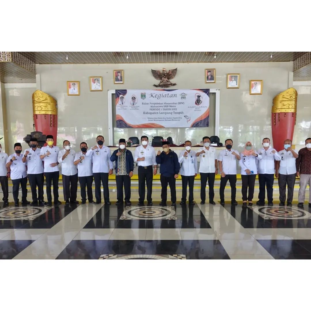 Pemerintah Kabupaten Lampung Tengah Menerima Mahasiswa Institut Agama Islam Negeri ( IAIN ) Metro dalam kegiatan Kuliah Pengabdian Masyarakat ( KPM ) periode 1 tahun 2022 di Sesat Agung Nuwo Balak pada Rabu 19 Januari 2022. Acara tersebut langsung di hadiri Bupati Lampung Tengah Musa Ahmad, Asisten, Kepala Perangkat Daerah dan Pihak IAIN Metro. Dalam sambutan Rektor IAIN Metro yang di wakili oleh Wakil Rektor 3 Dr. Mahrus As’ad, M.Ag , mengucapkan terimakasih atas diterimanya mahasiswa IAIN di Lampung Tengah , lebih lanjut Kegiatan ini akan berlangsung selama 40 hari dan berakhir pada 28 Februari 2022. Untuk mahasiswa yang diterjunkan pada periode 1 ini sebanyak 224 Mahasiswa/i yang mayoritas berasal dari Lampung Tengah, kegiatan ini akan terbagi di 11 Kecamatan yang ada di Kabupaten Lampung Tengah. Bupati Lampung Tengah Musa Ahmad menyambut baik dengan hadirnya mahasiswa yang akan melaksanakan kegiatan Kuliah Pengabdian Masyarakat di Kabupaten Lampung Tengah dan mengucapkan terima kasih atas kepercayaannya mengadakan kegiatan ini di Kabupaten Lampung Tengah. Penempatan di 11 Kecamatan ini juga merupakan titik smart Village yang akan di kembangkan di Lampung Tengah sehingga dengan hadirnya mahasiswa KPM ini bisa membantu mengembangkan dan memajukan wilayah di Lampung Tengah. (Diskominfotik Kabupaten lampung Tengah)