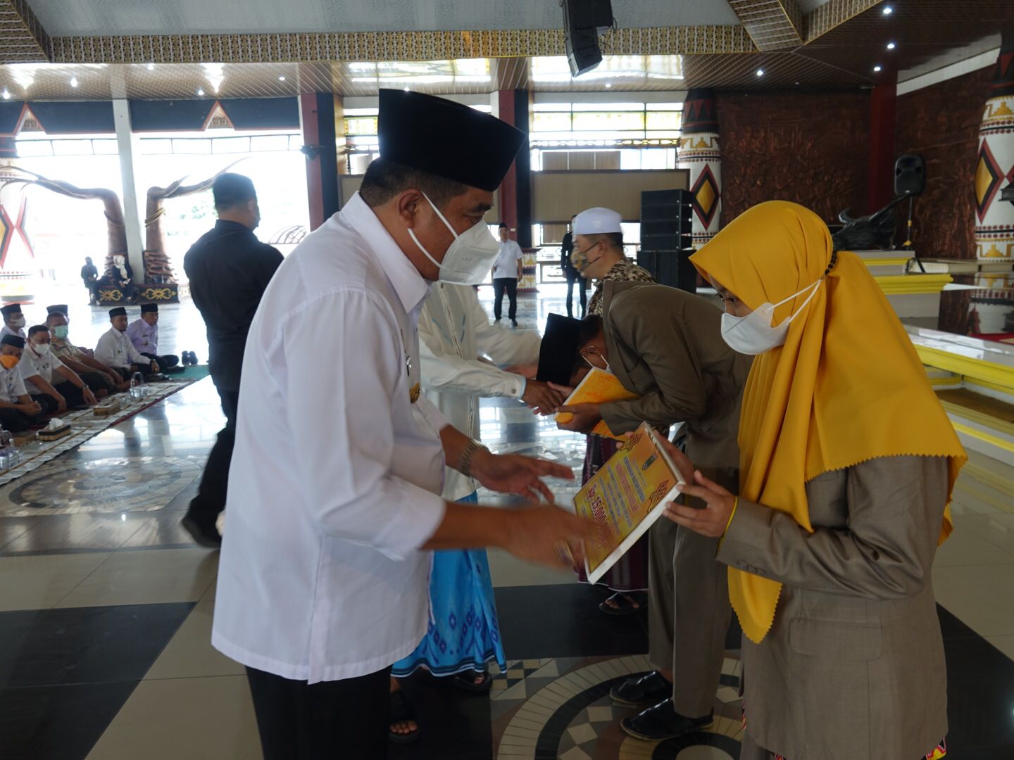 Pemerintah Kabupaten Lampung Tengah Menggelar acara Pemberian Penghargaan dan Pengajian Akhir Tahun bersama Penghapal Al Quran se Kabupaten Lampung Tengah di Sesat Agung Nuwo Balak Rabu 29 Desember 2021. Hadir dalam kesempatan tersebut Kepala Perangkat Daerah, Ketua PKK, Wakil Ketua ,Para Camat serta tamu Undangan. Pengajian ini menjadi sarana efektif untuk membangun dan meningkatkan keimanan serta ketaqwaan kita semua selaku pelayan masyarakat serta menjadi sarana untuk memperat tali silaturahmi, kekeluargaan dan kebersamaan dijajaran aparatur pemerintah Kabupaten Lampung Tengah. Bupati Musa Ahmad Juga mengatakan beberapa peristiwa baik keberhasilan, bencana alam maupun permasalahan yang muncul di kabupaten Lampung Tengah di tahun ini hendaknya kita sikapi secara arif dan kita ambil hikmahnya. Pada kesempatan itu pula pemerintah kabupaten Lampung Tengah memberikan apresiasi kepada para hafidz quran yang berjumlah 153 orang dari 28 Kecamatan. (Diskominfo Kabupaten Lampung Tengah)