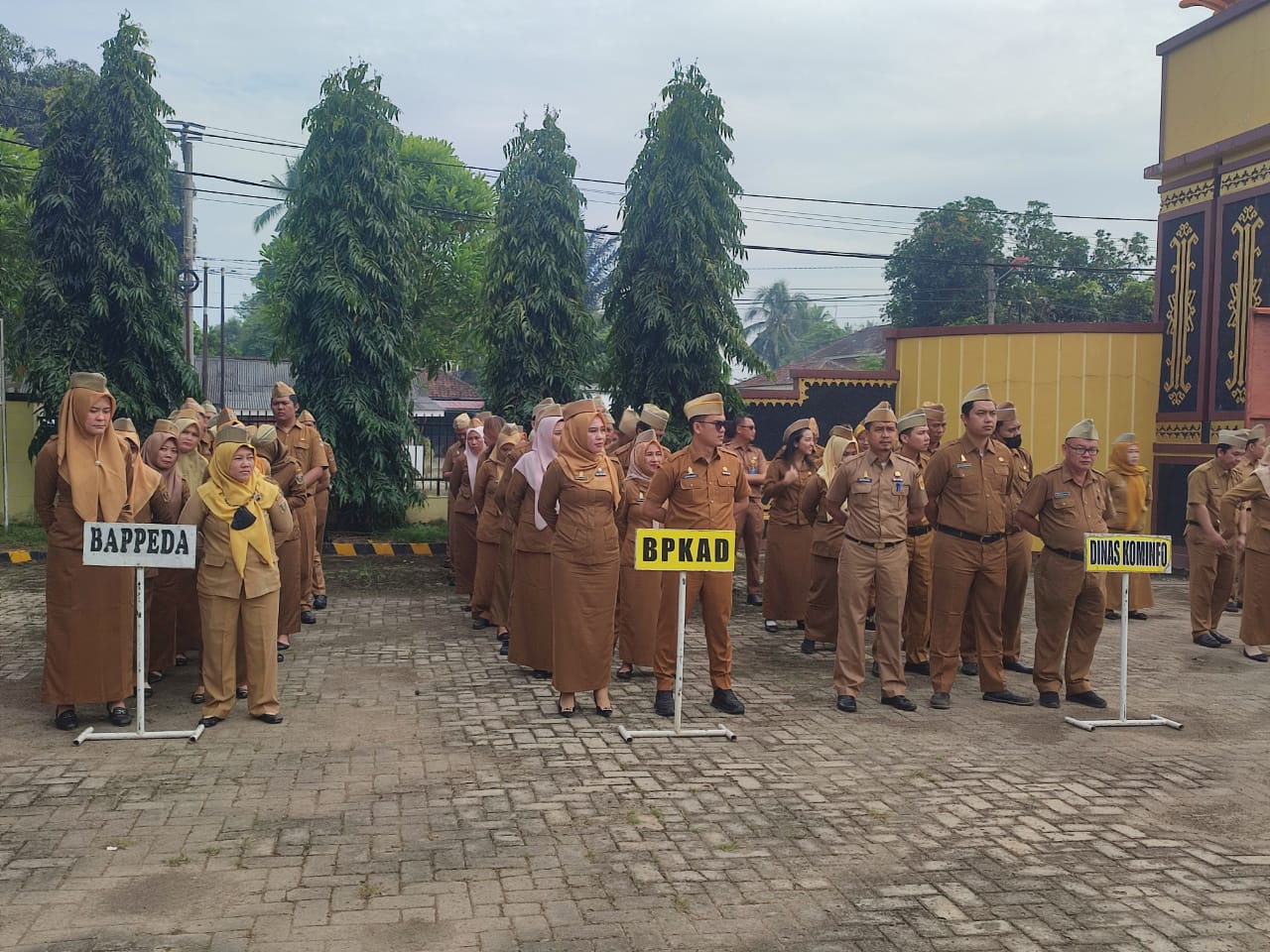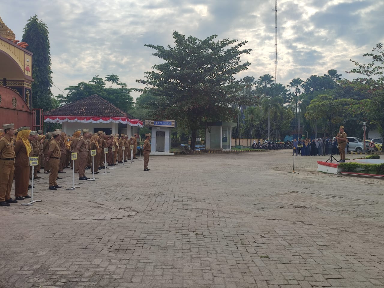 Gunung Sugih, Senin 4 Agustus 2025 — Pemerintah Kabupaten Lampung Tengah kembali menggelar apel mingguan yang dilaksanakan di lapangan kantor Bupati Lampung Tengah, Senin pagi (04/08/2025). Apel kali ini dipimpin oleh Asisten Bidang Administrasi Umum, Eko Dian Susanto, dengan petugas upacara dari Bagian Protokol Sekretariat Daerah. Dalam arahannya, Eko Dian Susanto menekankan pentingnya kedisiplinan dalam menjalankan tugas sebagai Aparatur Sipil Negara (ASN). Menurutnya, kedisiplinan merupakan kunci utama dalam membangun budaya kerja yang profesional dan akuntabel di lingkungan pemerintahan. “Sebagai ASN, kita harus menjadi contoh dalam hal kedisiplinan, baik dalam hal waktu, tanggung jawab, maupun dalam memberikan pelayanan kepada masyarakat,” ujarnya. Selain itu, Eko Dian juga menyoroti pentingnya peningkatan kapasitas diri, terutama dalam hal kemampuan komunikasi. Ia menekankan bahwa ASN di era saat ini harus memiliki kemampuan public speaking atau berbicara di depan umum sebagai bagian dari keterampilan dasar yang mendukung tugas pelayanan dan koordinasi. “Kemampuan public speaking harus terus diasah, karena kita tidak hanya bekerja di balik meja, tapi juga dituntut untuk mampu menyampaikan informasi, menjelaskan kebijakan, hingga memimpin rapat atau forum,” tegasnya. Apel mingguan ini juga menjadi sarana konsolidasi antarperangkat daerah untuk terus membangun sinergi dan semangat kerja di awal pekan, demi tercapainya target-target pembangunan dan pelayanan publik di Kabupaten Lampung Tengah. (Diskominfotik Lampung Tengah)
