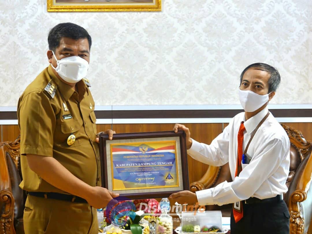 Pemerintah Kabupaten Lampung Tengah kembali menerima piagam penghargaan opini Wajar Tanpa Pengecualian (WTP) yang ke-3 kalinya atas Laporan Keuangan Tahun Anggaran 2020 dari Kementerian Keuangan Republik Indonesia. Penyerahan Piagam Penghargaan Opini WTP tersebut diberikan langsung oleh Tejo Prakosa selaku Kepala Kantor KPPN Metro kepada Bupati Lampung Tengah Musa Ahmad Dirumah Dinas Bupati Senin 01 November 2021. Dalam sambutannya Tejo Prakosa mengucapkan selamat kepada Kabupaten Lampung Tengah yang telah 3 berturut-turut menerima Piagam Penghargaan Opini WTP terhadap Laporan Keuangan Pemerintah Kabupaten Lampung Tengah. “Ini sebuah prestasi yang harus kita apresiasi bersama, itu merupakan upaya yang luar biasa dipimpin Bupati dan Aparat yang telah diberikan amanat dalam pengelolaan Keuangan. Kedepannnya Tejo Prakosa berharap semoga Kabupaten Lampung Tengah bisa menjadi inspirasi buat daerah lain. Sementara itu, Bupati Lampung Tengah Musa Ahmad mengucapkan terima kasih kasih kepada Kementerian Keuangan Republik Indonesia melalui Kantor Pelayanan Perbendaharaan Negara Kota Metro Provinsi Lampung, yang telah hadir langsung untuk memberikan sebuah penghargaan WTP kepada Kabupaten Lampung Tengah. Dijelaskan Musa “Piagam Penghargaan Opini WTP ini didapatkan karena usaha kita bersama dalam mengelola anggaran daerah dengan baik. Terima kasih kepada semua unsur Pemerintahan Kabupaten Lampung Tengah yang telah mempertahankan prestasi ini,”. Oleh karena itu Musa Ahmad kedepannya berharap kepada seluruh jajaran Pemerintahan Kabupaten Lampung Tengah dalah hal ini yang mengelola anggaran daerah untuk dapat mengevaluasi kekurangan-kekurangan kita selama ini dalam pengelolaan anggaran daerah,” . Semoga prestasi bisa kita pertahankan untuk di tahun-tahun berikutnya dan bisa menjadi motivasi bagi semua jajaran dalam pengelolaan keuangan daerah. Pada acara Penyerahan Piagam Penghargaan Opini WTP terhadap Laporan keuangan Pemerintah Kabupaten Lampung Tengah tahun 2020 turut dihadiri Sekertaris Daerah Nirlan, S.H., M.M dan Kepala Perangkat Daerah di Lingkungan Pemerintah Kabupaten Lampung Tengah. (Diskominfo Kabupaten Lampung Tengah)