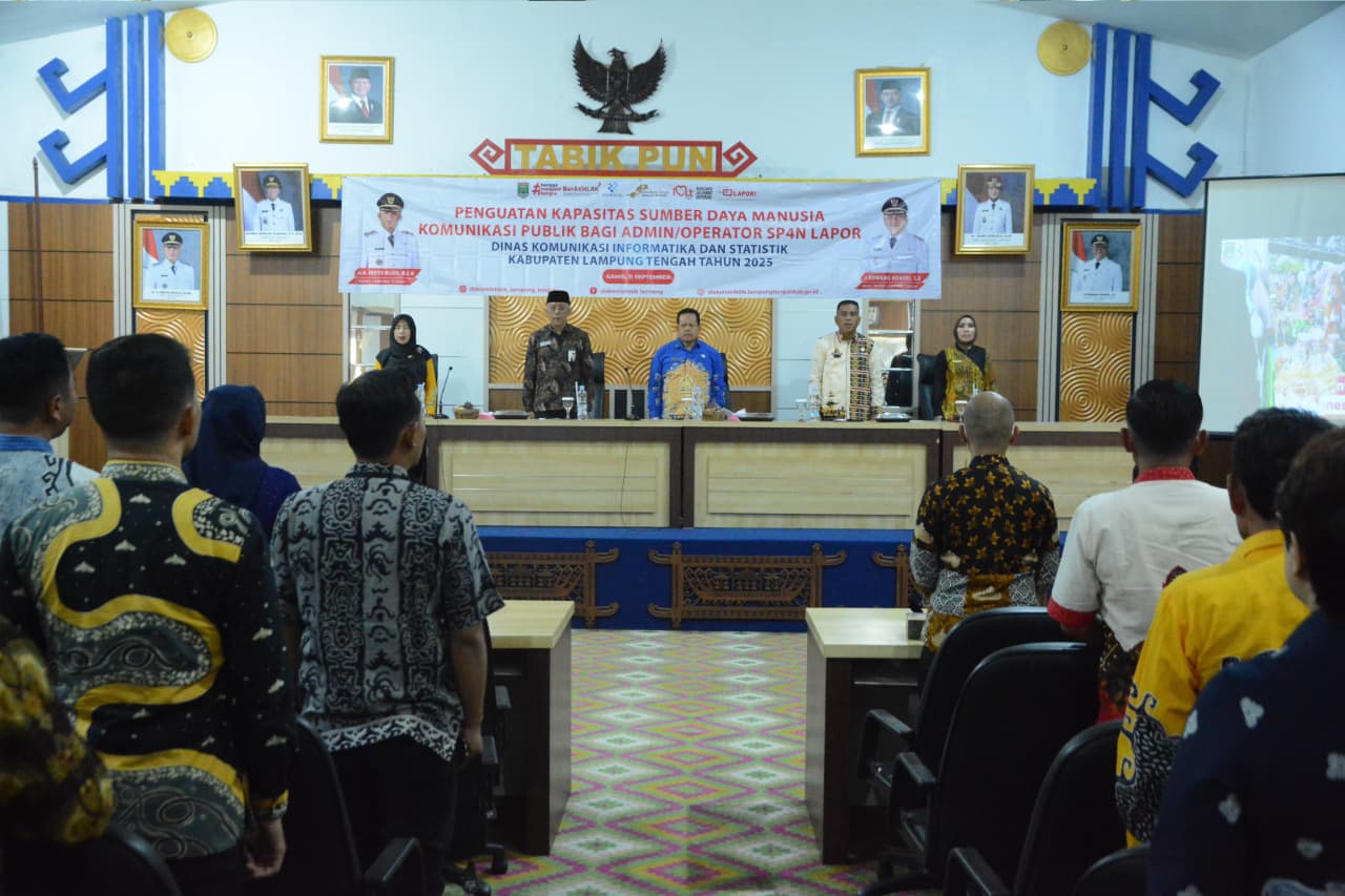 Pemerintah Kabupaten Lampung Tengah melalui Dinas Komunikasi, Informatika dan Statistik (Diskominfotik) menggelar kegiatan Penguatan Kapasitas Sumber Daya Manusia Komunikasi Publik bagi Admin/Operator SP4N LAPOR. Kegiatan tersebut dibuka secara resmi oleh Asisten Administrasi Umum Kabupaten Lampung Tengah Eko Dian Susanto, bertempat di Aula Siger Emas Lt IV Setdakab Lampung Tengah, Kamis (11/09/2025). Dalam sambutannya, Asisten Administrasi Umum Eko Dian Susanto menyampaikan bahwa penguatan kapasitas admin/operator SP4N LAPOR sangat penting dalam rangka meningkatkan pelayanan publik. Melalui sistem ini, diharapkan setiap aduan maupun aspirasi masyarakat dapat ditindaklanjuti dengan cepat, tepat, dan transparan. Kegiatan tersebut juga dihadiri oleh Kepala Dinas Diskominfotik Lampung Tengah Edi Supena, Kepala Ombudsman RI Perwakilan Provinsi Lampung Nur Rakhman Yusuf sebagai pemateri, Kabid Pengelolaan Informasi dan Komunikasi Publik Diskominfotik Lampung Tengah Rini Hidayati, Kabid Pelayanan Informasi dan Komunikasi Publik Diskominfotik Lampung Tengah Ari Puspa Dewi, serta para undangan terkait lainnya. Melalui kegiatan ini, Pemerintah Kabupaten Lampung Tengah berkomitmen untuk terus meningkatkan kualitas pelayanan publik, memperkuat komunikasi dua arah antara pemerintah dan masyarakat, serta memastikan setiap laporan masyarakat dapat diselesaikan sesuai dengan ketentuan yang berlaku. (Diskominfotik Lampung Tengah)