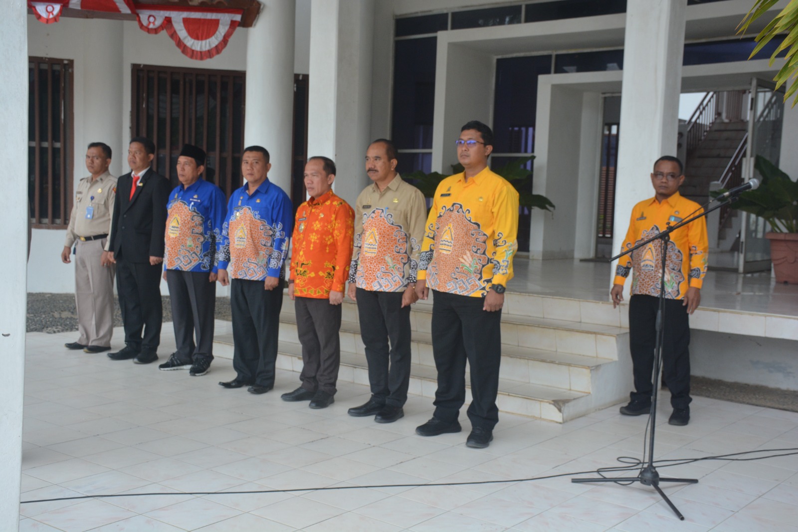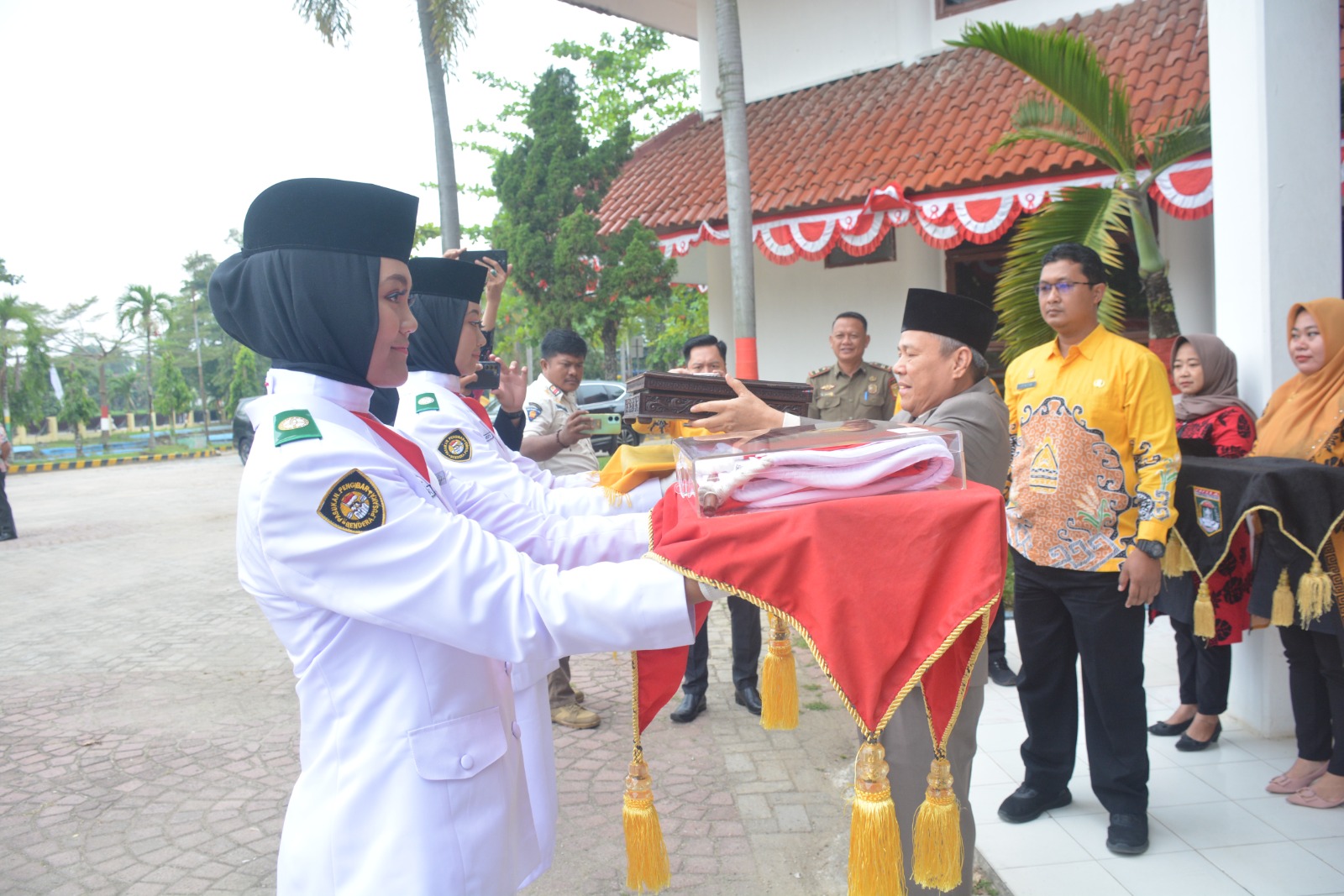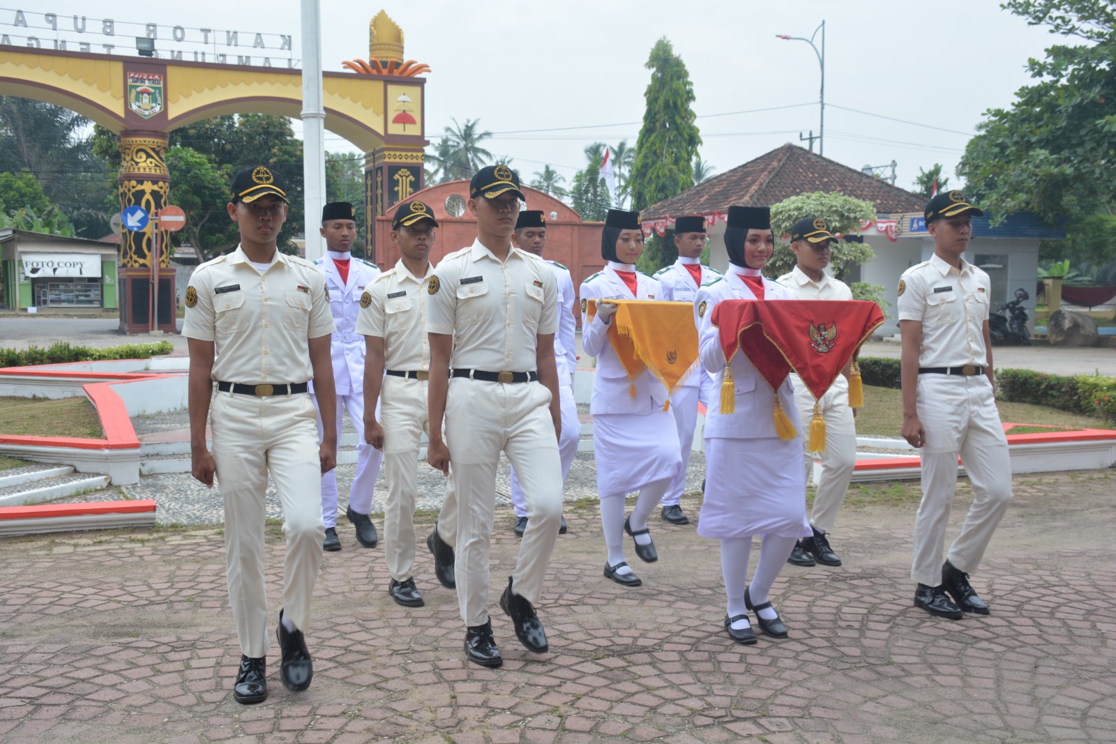 Pj. Sekretaris Daerah Kabupaten Lampung Tengah Drs. Kusuma Riyadi, M.M. Menyerahkan Bendera Duplikat Kepada pasukan pengibar bendera sang merah putih Kab. Lampung Tengah Tahun 2024.Di Halaman Pemda Lampung Tengah, Jum'at (16/08/2024). Pj. Sekretaris Daerah Kabupaten Lampung Tengah Di dampingi Staff Ahli Bidang Pemerintahan, Hukum dan Politik Zulfikar Irwan, S.Sos., M.M, Asisten Bidang Ekonomi dan Pembangunan (Ekbang) Drs. Rusmadi, M.M. Kaban Kesbangpol Lampung Tengah Yasir Asromi AP,.M.SI, dan tamu undangan. Dalam arahan nya Pj. Sekretaris Daerah Kabupaten Lampung Tengah Drs. Kusuma Riyadi, M.M. mengucapkan agar seluruh Pasukan paskibraka Lampung Tengah dapat melaksanakan tugas dengan sebaik-baiknya. (Diskominfotik Lampung Tengah)