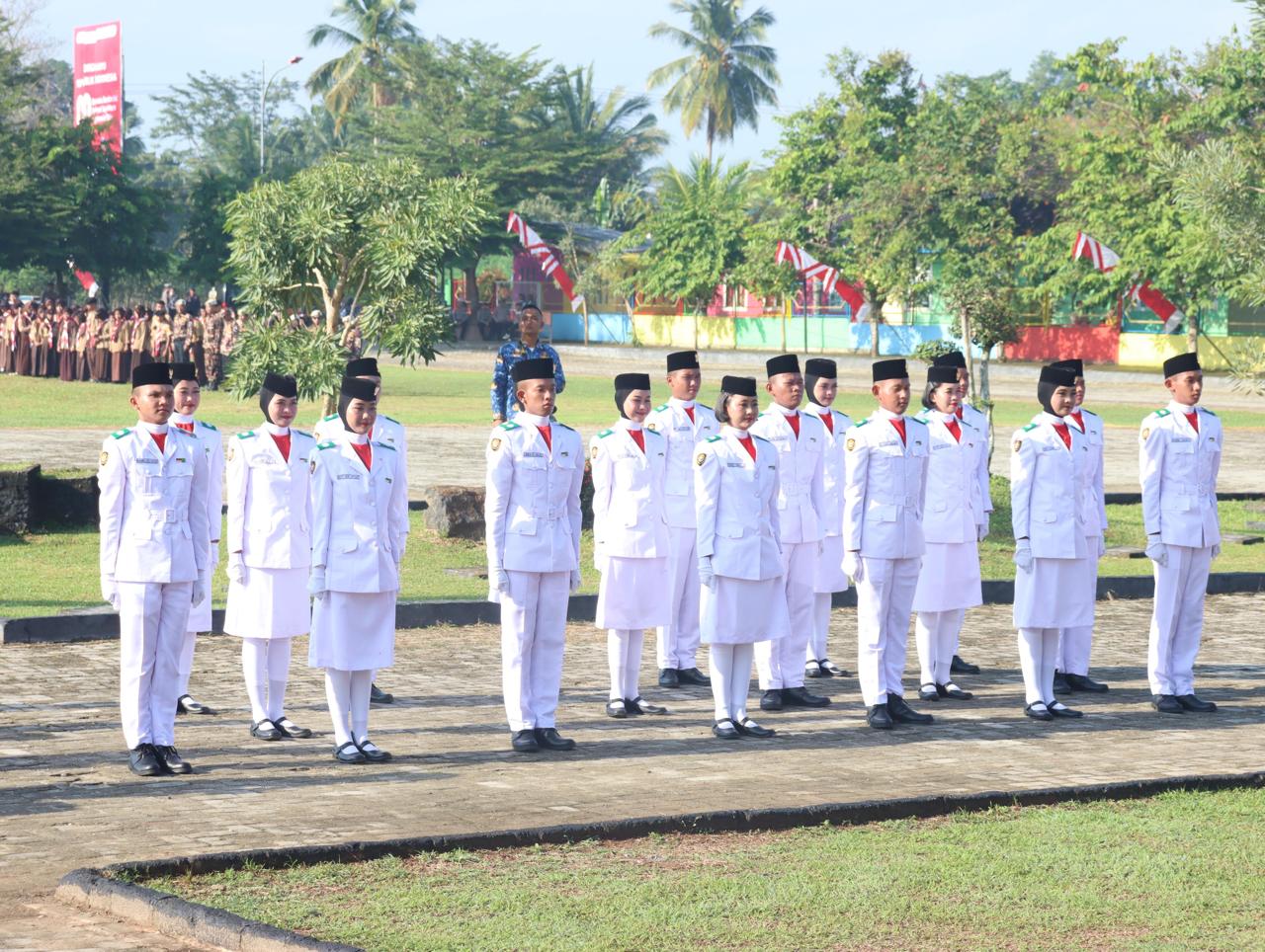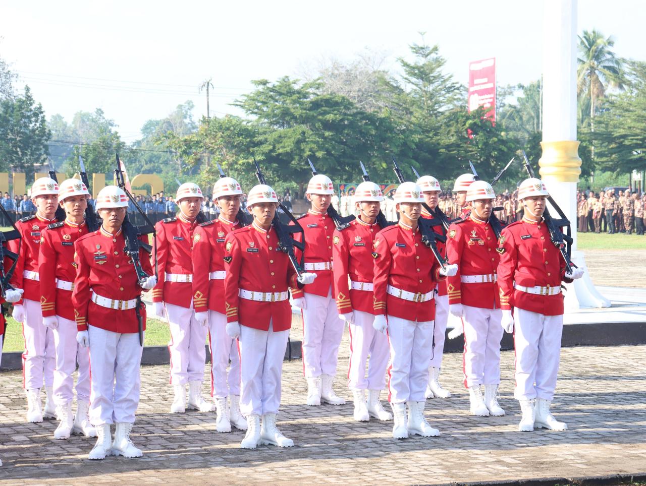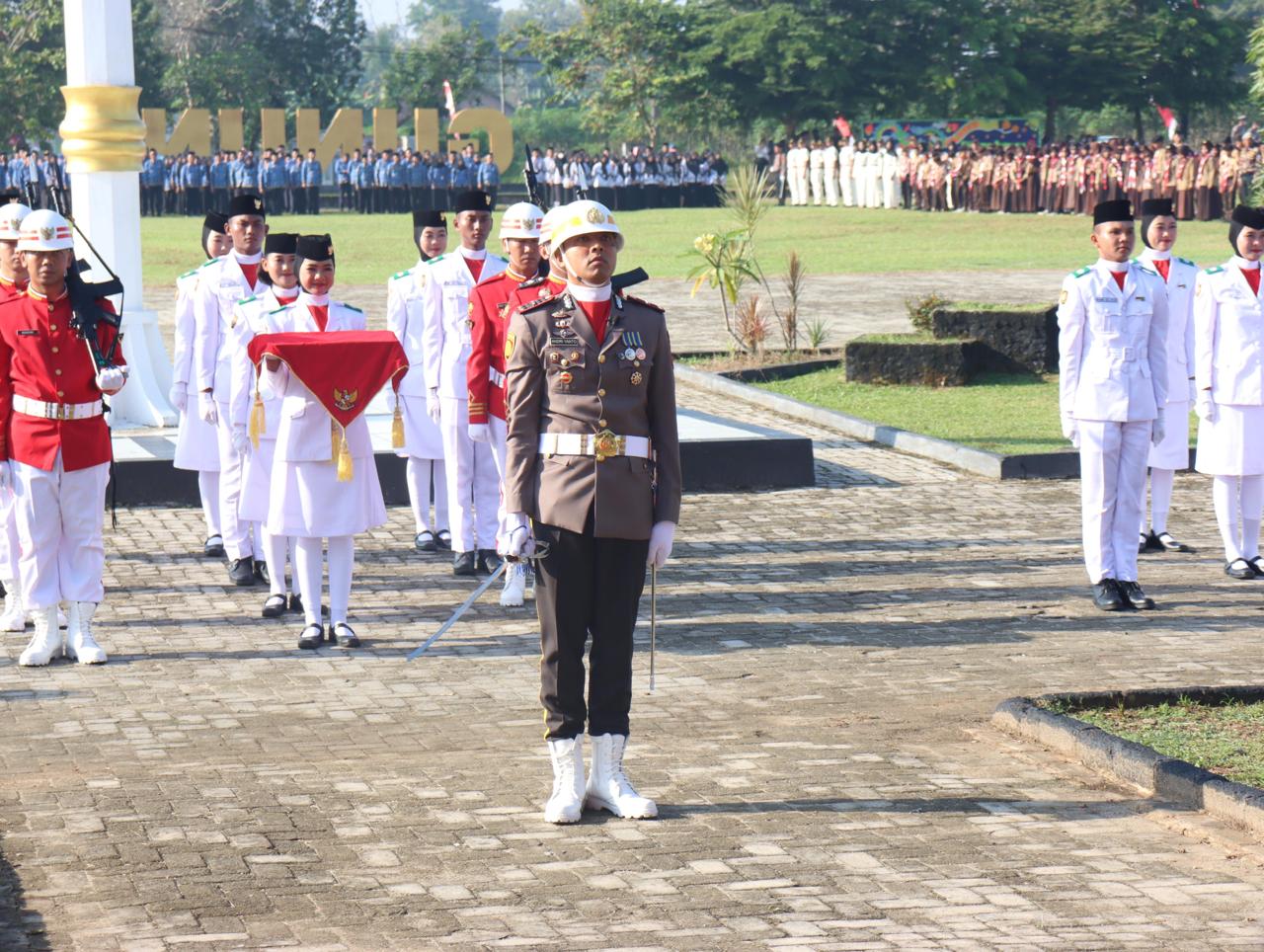 Wakil Bupati Lampung Tengah, I Komang Koheri, S.E., bertindak sebagai Inspektur Upacara dalam rangkaian penurunan Bendera Merah Putih memperingati Hari Ulang Tahun ke-80 Kemerdekaan Republik Indonesia, yang digelar dengan penuh khidmat di Lapangan Merdeka, Gunung Sugih, pada Minggu (17/08/2025). Upacara tersebut dihadiri oleh berbagai unsur Forum Koordinasi Pimpinan Daerah (Forkopimda), jajaran Aparatur Sipil Negara (ASN), anggota TNI/Polri, pelajar dari berbagai sekolah, organisasi kemasyarakatan, serta masyarakat umum yang turut ambil bagian dalam perayaan hari bersejarah tersebut. Prosesi penurunan bendera berlangsung dengan lancar dan tertib, diiringi semangat nasionalisme yang membara dari seluruh peserta upacara. Tim Pasukan Pengibar Bendera (Paskibra) yang terdiri dari pelajar pilihan juga melaksanakan tugasnya dengan penuh tanggung jawab dan kehormatan. Dalam sambutannya, Wakil Bupati I Komang Koheri menegaskan pentingnya menjadikan momen peringatan Hari Kemerdekaan sebagai ajang refleksi atas perjuangan para pahlawan bangsa serta memperkuat semangat kebangsaan dalam kehidupan sehari-hari. “Peringatan Hari Kemerdekaan ini bukan hanya bersifat seremonial, tetapi menjadi momentum untuk merenungkan kembali nilai-nilai perjuangan para pendahulu kita. Sudah menjadi tanggung jawab kita bersama untuk menjaga semangat persatuan dan kesatuan, serta memberikan kontribusi nyata dalam pembangunan daerah,” ujar Komang Koheri. Ia juga mengajak seluruh lapisan masyarakat Lampung Tengah untuk terus bekerja sama dalam membangun daerah, menjaga stabilitas sosial, serta mendukung program-program pemerintah menuju kemajuan yang berkelanjutan. Tahun ini, peringatan HUT ke-80 RI mengangkat tema nasional “Indonesia Emas 2045: Bersatu, Bangkit, Maju”, yang mencerminkan cita-cita besar bangsa Indonesia untuk menjadi negara maju dan sejahtera. (Diskominfotik Lampung Tengah)