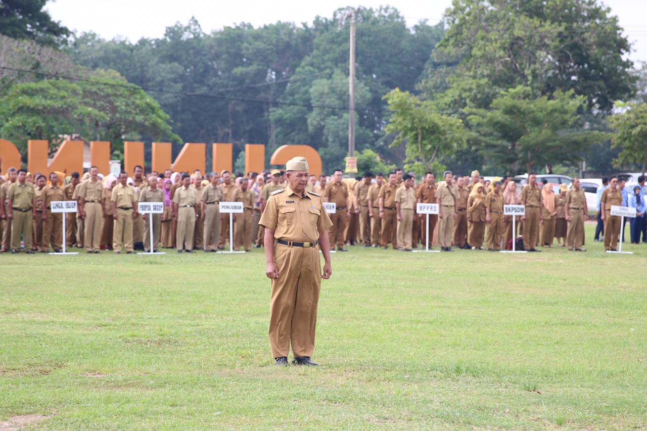 GUNUNG SUGIH, Untuk Semua Aparatur Sipil Negara (ASN) di lingkungan Pemerintah Kabupaten (Pemkab) Lampung Tengah untuk tidak terburu membeli seragam dinas ASN karena nantinya akan ada peraturan baru terkait pakaian dinas harian ASN yang harus diikuti oleh seluruh pegawai Pemerintah Daerah Kabupaten Lampung Tengah yaitu Permendagri No. 11 Tahun 2020. Demikian disampaikan Asisten Bidang Adminstrasi Umum Drs. Hi. Sarjito pada apel bulanan yang berlangsung di Lapangan Merdeka Gunung Sugih, Senin 02 Maret 2020. Sarjito menambahkan sebagai ASN kita harus mempunyai inovasi dan kreatifitas dari semua permasalahan yang ada sehingga mampu terselesaikan di OPD (Organisasi Perangkat Daerah). Oleh karena itu mantan Kepala Dinas Komunikasi dan Informatika ini berpesan agar semua harus tertib dalam bekerja. Sarjito menegaskan bahwa tertib dan taat pada peraturan adalah wajib bagi seluruh abdi negara. Baik itu dalam segi administrasi, pekerjaan maupun pelayanan masyarakat kita harus memberikan kinerja yang maksimal. Selain itu Sarjito juga menyampaikan bahwa "Kita adalah abdi masyarakat, wajib bagi kita untuk menjadi contoh yang baik dan memberikan yang terbaik bagi masyarakat dan pemerintah." Hal-hal mengenai rahasia negara juga harus dijaga dan dijalani dengan baik oleh ASN, karena menurut Sarjito indikator kemajuan daerah juga bergantung kepada kinerja Aparatur Sipil Negara di wilayah masing-masing. Jika semua bekerja baik maka maksimal pula pelayanan kepada masyarakat yang dapat berimbas kepada peningkatan kepercayaan masyarakat kepada pemerintah daerah. Hal ini tentu memudahkan dalam pengembangan kegiatan pemerintah daerah terkait visi misi pembangunan suatu daerah. Diakhir arahannya Asisten Bidang Administrasi Umum Sekretariat Daerah Kabupaten Lampung Tengah ini mengingatkan bahwa pada hari Senin 2 Maret 2020 merupakan hari pertama ini kita akan bekerja sebagai abdi masyarakat abdi negara dengan fokus bekerja dengan setulus hati syukuri apa yang ada dan di syukuri apa yang kita miliki. (DISKOMINFO LAMPUNG TENGAH)