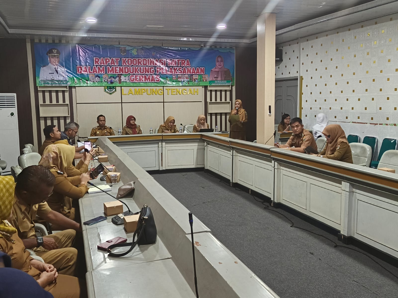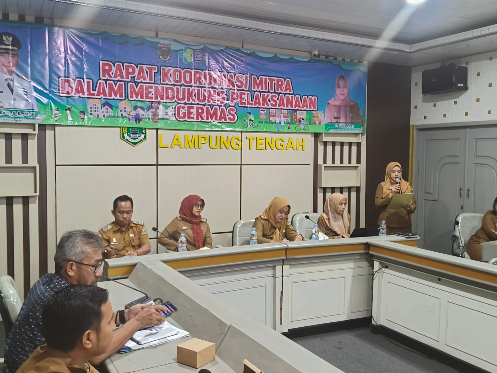Pemerintah Kabupaten (Pemkab) Lampung Tengah (Lamteng) melalui Dinas Kesehatan (Dinkes) mengadakan kegiatan Rapat Koordinasi Mitra Dalam Mendukung Pelaksanaan Gerakan Masyarakat Hidup Sehat (Germas), bertempat di Aula Bappeda Lamteng. Selasa (19/11/2024). Kepala Dinkes Lamteng, dr. Lidia Dewi dalam laporannya mengatakan bahwa Germas ini bertujuan untuk memasyarakatkan budaya hidup sehat serta meninggalkan kebiasaan dan perilaku masyarakat yang kurang sehat. Aksi GERMAS diikuti dengan memasyarakatkan perilaku hidup bersih sehat dan dukungan untuk program infrastruktur dengan basis masyarakat. Kemudian, dr. Lidia juga menyampaikan tujuan dari kegiatan ini mendukung pengembangan dan komitmen kemitraan dalam mendukung pelaksanaan GERMAS di Lamteng. Hadir dalam kegiatan tersebut Narasumber dari Dinkes Provinsi Lampung, Tri Okviyanti, S.KM, M.H., dan Perwakilan Perangkat Daerah terkait dilingkungan Pemkab Lamteng. (Diskominfotik Lampung Tengah)