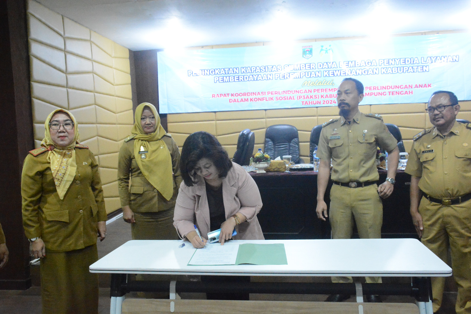 Staf Ahli Bupati Bidang Kemasyarakatan dan SDM, Dr. Candra Puasati, S.Pd., M.Pd., mewakili Pjs Bupati Lampung Tengah, Bobby Irawan.S.E., M.S.i. Membuka secara resmi. Rapat koordinasi perlindungan perempuan dan perlindungan anak dalam konflik sosial (Rakor P3AKS) kab. Lampung Tengah tahun 2024. Selasa, 19/11/2024 di Gedung BJW Nuwo Balak Lampung Tengah. Kepala dinas PPPA kabupaten Lampung Tengah,Nurliana.S.H. M.H dalam.laporanya menyampaikan, "Dasar kegiatan ini adalah undang-undang nomor 35 tahun 2014 tentang perubahan atas undang-undang nomor 23 tahun 2002 tentang perlindungan anak kemudian undang-undang nomor 23 tahun 2004 tentang penghapusan kekerasan dalam rumah tangga, dan undang-undang Nomor 21 Tahun 2007 tentang pemberantasan tindak pidana perdagangan orang, surat keputusan Bupati Lampung Tengah nomor 99/kpps/d. B. VI. 10/2024 tentang pembentukan panitia kegiatan rapat koordinasi perlindungan dan pemberian perempuan dan anak dalam konflik sosial Kabupaten Lampung Tengah tahun 2024." Adapun tujuan daripada kegiatan pada hari ini yaitu untuk meningkatkan kewaspadaan dan pencegahan kejadian-kejadian konflik sosial yang mengakibatkan korban kepada masyarakat khususnya perempuan dan anak. Narasumber berasal dari dinas PPPA provinsi Lampung badan Kesbangpol provinsi Lampung dan LADA DAMAR Provinsi Lampung. Sementara itu DR.Candra Puasati S.P.d., M.P.d. dalam sambutanya menyampaikan, "Dengan pelaksanaan rapat koordinasi ini berharap nanti para peserta dapat bekal materi, tetapi bukan karena materinya saja tetapi apa yang akan dilakukan setelah sampai di kantornya masing-masing, karena pesertanya adalah seluruh Kecamatan.yang mana kewenangan di wilayah hanya pada kecamatan." Sebagaimana kita ketahui bersama bahwa Kabupaten Lampung Tengah merupakan wilayah terbesar di Provinsi Lampng dengan luas 4678,82 km2 dengan penduduk terbanyak hampir 1,5 juta jiwa dengan ras suku budaya yang sangat beragam semuanya ada di Kabupaten Lampung Tengah, maka sangat potensi munculnya konflik sosial yang mengakibatkan korban, harta benda, bahkan jiwa, terutamanya dari kalangan perempuan dan anak. Alhamdulilah untuk di lampng tengah,konflik sosial baik secara kualitas dan Kuantitas sudah jauh menurun.berkat koordinasi di tingkat pimpinan, tokoh masyarakat, hingga ke akan rumpun masyarakat. Yang mana bentuk bentuk perlindungan dapat dilakukan dalam bentuk pencegahaj melalui sosialisasi dan peningkatan kesadaran terhadap masyarakat untuk senantiasa taat pada peraturan dan hukum yang berlaku, serta meningkatkan peran dan pemahaman keagamaan ,budaya ,musyawarah dan mufakat dalam mengatasi perbedaan dan perselisihan. (Diskominfotik Lampung Tengah)