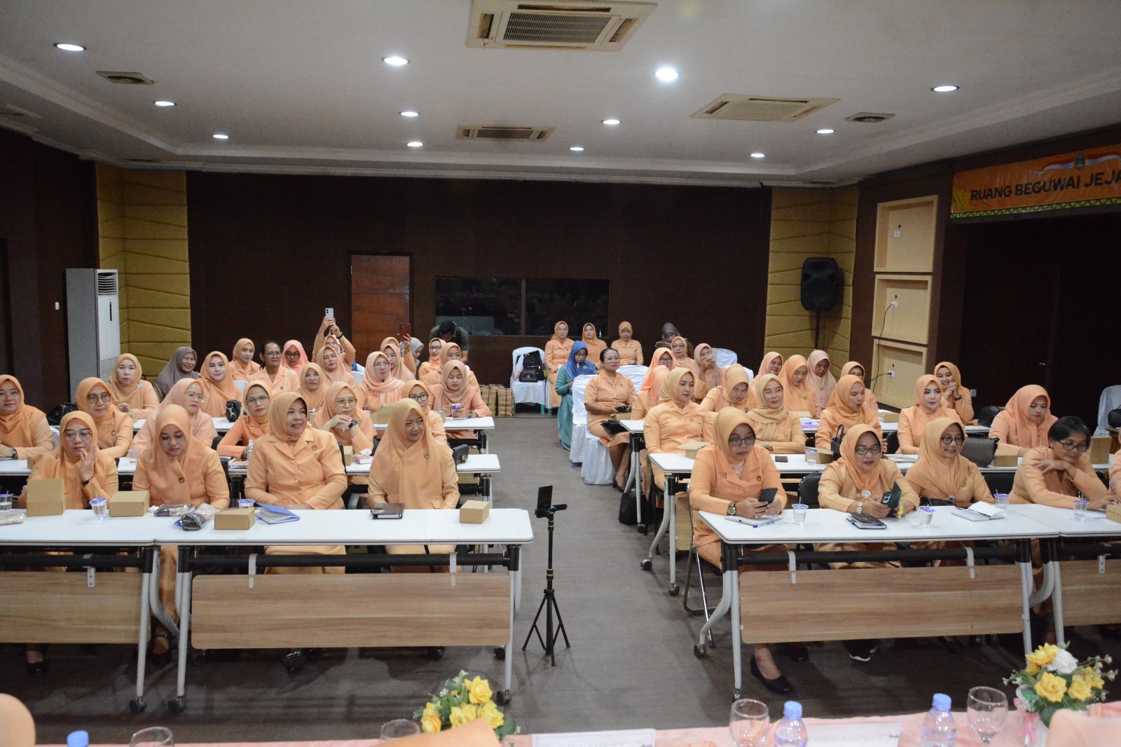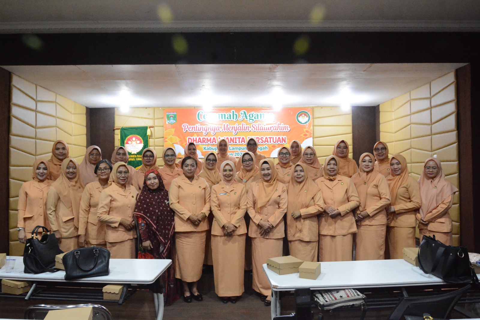 Dharma Wanita Persatuan (DWP) Kabupaten Lampung Tengah menggelar Rapat Koordinasi (Rakor) Triwulan 2 Tahun 2025 yang berlangsung di Ruang BJW, Komplek Rumah Dinas Bupati Kabupaten Lampung Tengah. Kegiatan ini dihadiri oleh para pengurus dan anggota DWP dari berbagai unsur Organisasi Perangkat Daerah (OPD), Selasa (06/05/2025). Rakor ini dipimpin langsung oleh Penasehat Dharma Wanita Persatuan Kabupaten Lampung Tengah Indria Sudrajat Ardito Wijaya dan dihadiri juga oleh wakil Penasehat Dharma Wanita Persatuan Kabupaten Lampung Tengah Ni Ketut Dewi Nadi Koheri. Dalam Laporannya, Pj Ketua DWP Kabupaten Lampung Tengah Suparti Rusmadi menyampaikan bahwa rapat koordinasi ini DWP dilaksanakan setiap tiga bulan sekali atau setiap triwulan, dengan peserta dari unsur pelaksana sekretariat pemda, Ketua DWP unsur pelaksana perangkat daerah, Ketua unsur pelaksana kecamatan dan pengurus DWP Kabupaten Lampung Tengah. Masih dalam kegiatan yang sama Penasehat Dharma Wanita Persatuan Kabupaten Lampung Tengah Indria Sudrajat Ardito Wijaya dalam sambutannya mengajak kepada seluruh pengurus dan anggota Dharma Wanita baik Dharma Wanita Kabupaten dan Kecamatan dapat bersatu dan bekerjasama dalam mewujudkan tujuan organisasi yang diselaraskan dengan Visi dan Misi Kabupaten Lampung Tengah. Perlu kita ketahui bahwa Visi dan Misi Kabupaten Lampung Tengah adalah mewujudkan Lampung Tengah sebagai Kabupaten yang unggul, adil dan sejahtera. Indria juga berharap dengan diadakannya kegiatan ini Dharma Wanita persatuan Kabupaten Lampung Tengah dapat menjalankan Visi dan Misi Kabupaten Lampung Tengah. Kegiatan ini berlangsung dengan lancar dan penuh semangat kekeluargaan. Diharapkan hasil dari rakor ini dapat memperkuat peran Dharma Wanita Persatuan sebagai mitra strategis pemerintah daerah. (Diskominfotik Lampung Tengah)