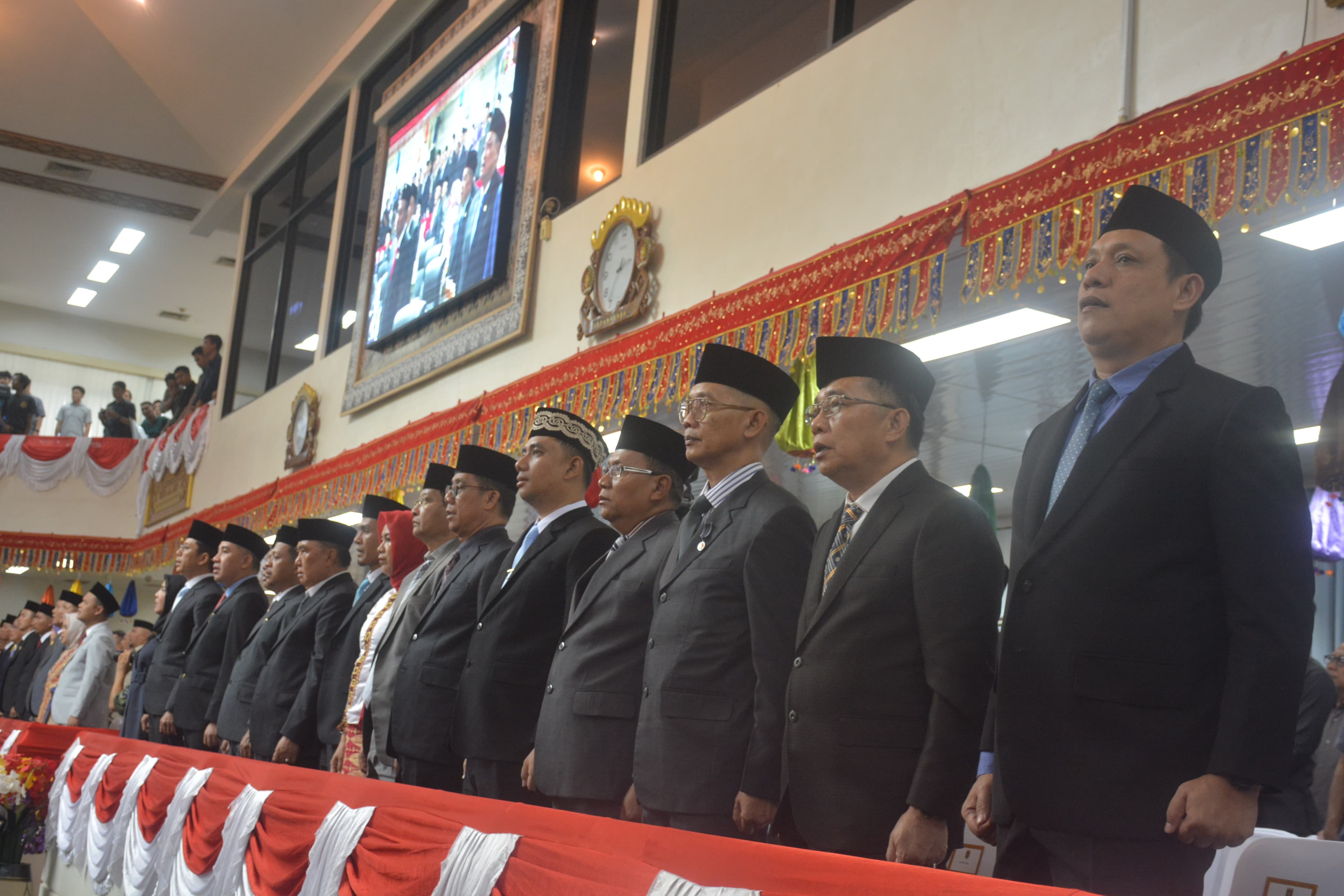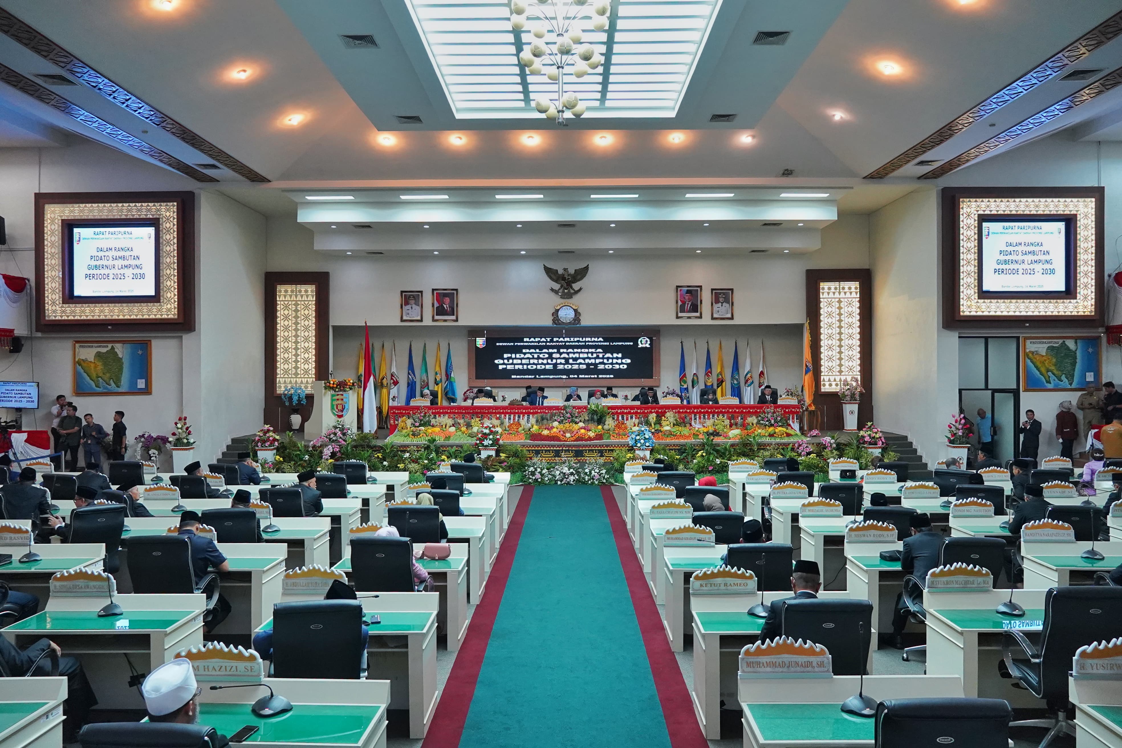Staf Ahli Bupati Bidang Ekonomi Pembangunan Gusmara Jaya, mewakili Bupati Lampung Tengah dr Ardito Wijaya, M.K.M. menghadiri Rapat Paripurna DPRD Provinsi Lampung dalam rangka Pidato Sambutan Gubernur Lampung Periode 2025 - 2030 di ruang sidang paripurna DPRD Provinsi Lampung. Selasa 4/3/2025. Gubernur Lampung Rahmat Mirzani Djausal mohon doa dan restu dari masyarakat Lampung untuk menjalankan amanah mewujudkan visi Bersama Lampung Maju Menuju Indonesia Emas 2025 - 2030, yang disampaikan dalam Pidato Perdana pada Rapat Paripurna DPRD Provinsi Lampung, tersebut. Gubernur Lampung Rahmat Mirzani Djausal mengharapkan dukungan seluruh elemen masyarakat untuk berkolaborasi mewujudkan visi tersebut. Ia menekankan pentingnya kerja produktif, aktif, adaptif, inovatif, dan kolaboratif dalam menghadapi tantangan pembangunan. “Kami memohon doa restu kepada hadirin dan seluruh masyarakat Lampung untuk melaksanakan amanah ini dengan sepenuh hati demi kepentingan serta kesejahteraan masyarakat Lampung dengan penuh tanggung jawab,” ujar Gubernur Mirza. “Disaksikan oleh segenap masyarakat Lampung dan terutama disaksikan oleh Allah SWT, Kami (Rahmat Mirzani Djausal dan Jihan Nurlela) bertekad untuk istiqomah menjalankan amanah, memimpin Provinsi Lampung sebagai Gubernur dan Wakil Gubernur Lampung Periode 2025-2030,” tambahnya. Gubernur Mirza juga mengucapkan terima kasih sebesar-besarnya kepada masyarakat Lampung, yang telah menaruh kepercayaan, memberi amanah dan menitipkan harapan kepada kami. “Bukan hal yang mudah bagi kami, terutama dengan sejumlah tantangan, permasalahan dan pekerjaan rumah yang harus segera diselesaikan". “Dengan tekad yang kuat, keinginan untuk berjuang, sejak kami melakukan deklarasi sebagai Calon Gubernur dan Wakil Gubernur, akan kami tuntaskan amanah dengan segenap kekuatan yang kami miliki,” tegas Gubernur Mirza. Pembangunan Provinsi Lampung 5 (lima) tahun ke depan tentunya akan berkontribusi dalam pencapaian Visi dan Asta Cita pembangunan nasional. Pada kesempatan itu pula, Gubernur Lampung Mirzani Djausal juga menyoroti sejumlah permasalahan pembangunan yang dihadapi Provinsi Lampung, seperti pertumbuhan ekonomi yang masih di bawah rata-rata nasional, tingkat kemiskinan, tingkat pengangguran terbuka, dan indeks pembangunan manusia yang belum optimal. “Memperbaiki Kondisi ini diperlukan upaya-upaya kolaborasi, peran pemerintah, masyarakat dan dunia usaha. Serta saya mengajak seluruh komponen pembangunan, khususnya Pimpinan dan Anggota DPRD Provinsi Lampung untuk saling bahu-membahu bersama mewujudkan pembangunan di Provinsi Lampung,” jelasnya. Rapat Paripurna tersebut turut dihadiri Wakil Gubernur Lampung Jihan Nurlela, Forkopimda Provinsi Lampung, Ketua TP PKK Provinsi Lampung Ibu Purnama Wulan Sari Mirza, Anggota DPRD Provinsi Lampung, Bupati/Wali Kota se-Provinsi Lampung beserta Ketua DPRD Kabupaten/Kota, Kepala OPD dilingkungan Pemerintah Provinsi Lampung, Pimpinan Instansi Vertikal, dan Tokoh Adat, Tokoh Masyarakat serta undangan lainnya. (Diskomionifotik Lampung Tengah)