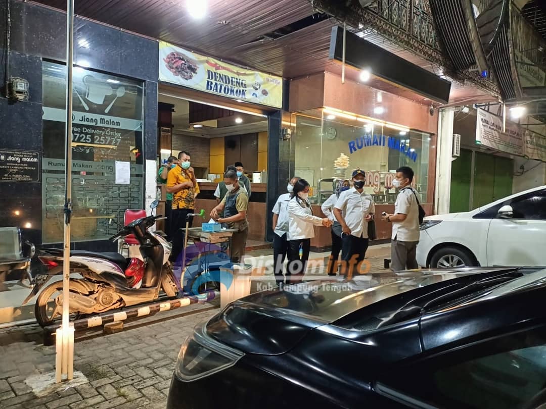 Terbanggi Besar - Monitoring malam hari ini dilakukan oleh Satgas Gugus Tugas Covid-19 Kec. Terbanggi Besar bersama Forkopimcam dan OPD Pendamping.Terkait dengan Himbauan melalui Surat Edaran yang telah disampaikan kepada Pengusaha Rumah makan, Cafe, Mini market, serta Pedagang dan tempat Hiburan telah menampakkan hasil yang cukup baik. Sebagian besar para pengusaha tersebut telah menutup tempat usaha mereka, hanya disebagian yang masih beroperasi seperti pedagang tenda di depan Bandar Jaya Plaza, di Taman Gotong Royong Prosida, serta rumah makan di daerah Bandar Jaya dan Yukum Jaya. Pengusaha dan pedagang tersebut mendapatkan peringatan dan teguran dari Tim Satgas Covid-19. (Diskominfo Kabupaten Lampung Tengah)