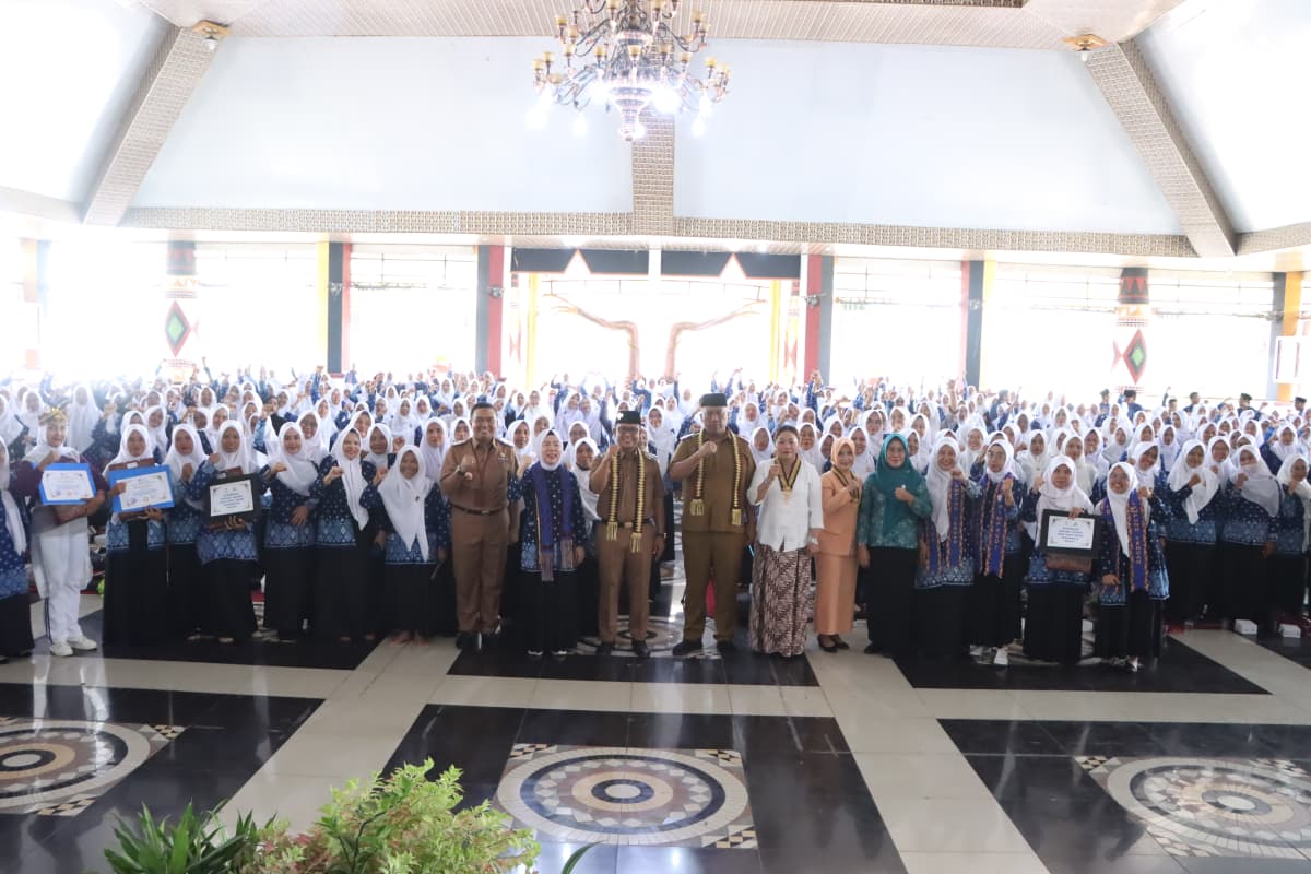 Bupati Lampung Tengah, Ardito Wijaya, secara resmi membuka Seminar Nasional dalam rangka memperingati Hari Ulang Tahun Himpunan Pendidik dan Tenaga Kependidikan Anak Usia Dini Indonesia (Himpaudi) ke-20 tahun. Acara tersebut berlangsung khidmat di Gedung Sesat Agung Nuwo Balak, Gunung Sugih, pada Selasa (23/09/2025). Turut hadir dalam kesempatan tersebut, Wakil Bupati Lampung Tengah I Komang Koheri, Ketua Umum PP Himpaudi Dr. Betti Nuraini, Ketua GOW Lampung Tengah Ni Ketut Dewi Nadi Koheri, Ketua DWP Lampung Tengah dr. Dwi Evayati, Kepala Dinas Pendidikan dan Kebudayaan Lampung Tengah Dr. Nur Rohman, serta para organisasi persatuan guru dan tenaga pendidik. Dalam sambutannya, Bupati Ardito Wijaya menyampaikan apresiasi tinggi kepada seluruh pendidik PAUD yang telah berperan besar dalam membangun fondasi pendidikan sejak usia dini. Menurutnya, keberadaan Himpaudi merupakan garda terdepan dalam membentuk generasi penerus yang berkarakter, cerdas, dan berakhlak mulia. "Anak usia dini adalah masa emas perkembangan yang sangat menentukan kualitas bangsa di masa depan. Oleh karena itu, pendidik PAUD memiliki tanggung jawab yang besar dalam menanamkan nilai-nilai dasar yang akan melekat sepanjang hidup anak-anak kita," ujar Bupati. Bupati juga menegaskan bahwa Pemerintah Kabupaten Lampung Tengah berkomitmen untuk terus mendukung peningkatan kualitas pendidikan, termasuk melalui penguatan kapasitas pendidik PAUD. Seminar nasional ini diharapkan menjadi wadah bertukar gagasan, memperluas wawasan, serta memperkuat jejaring antarpendidik di seluruh Indonesia. Dengan dibukanya seminar nasional ini, Bupati berharap momentum HUT ke-20 Himpaudi dapat menjadi pengingat pentingnya peran pendidik PAUD dalam mencetak generasi Lampung Tengah yang unggul, berdaya saing, serta siap menghadapi tantangan global. (Diskominfotik Lampung Tengah)
