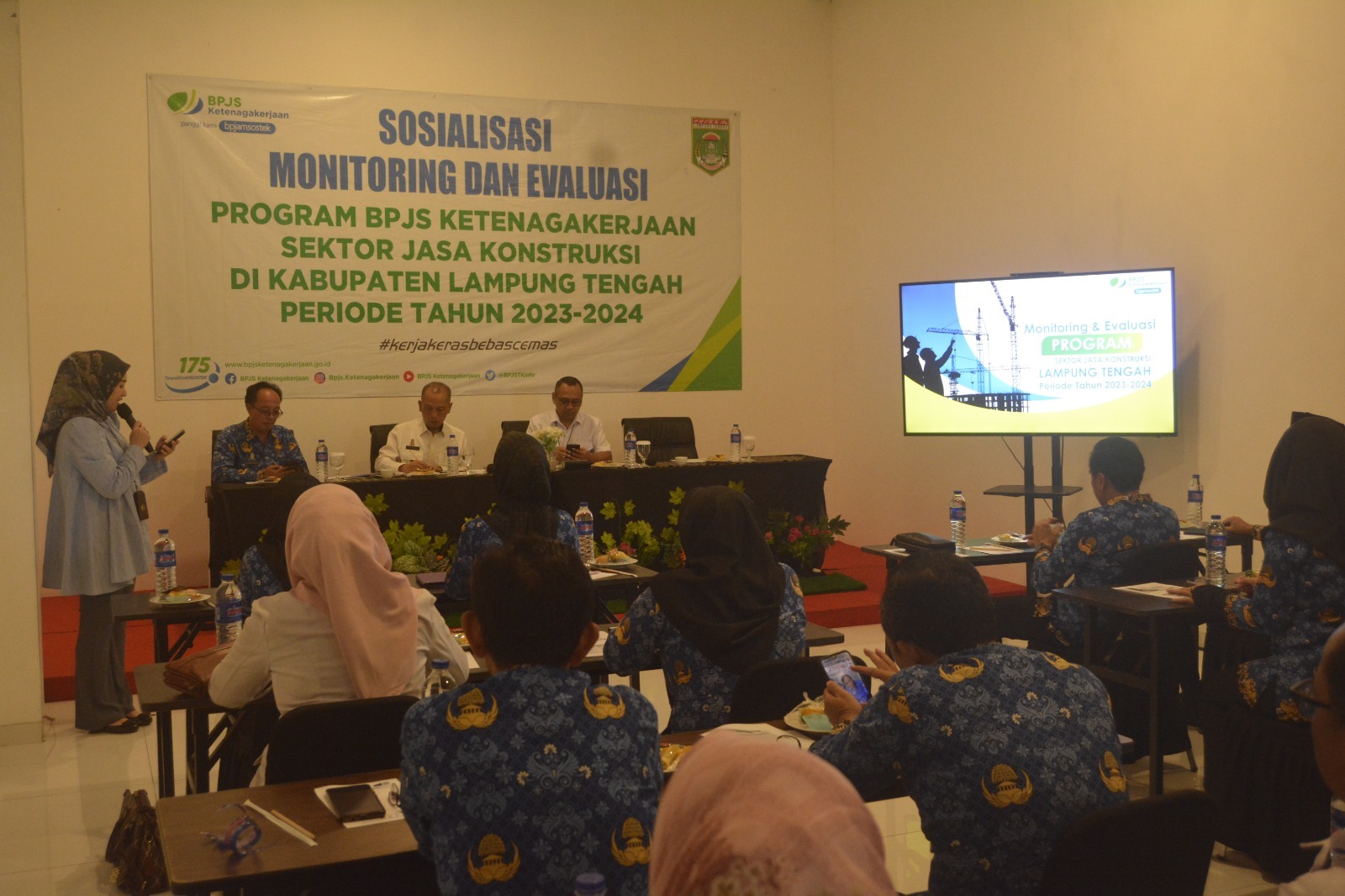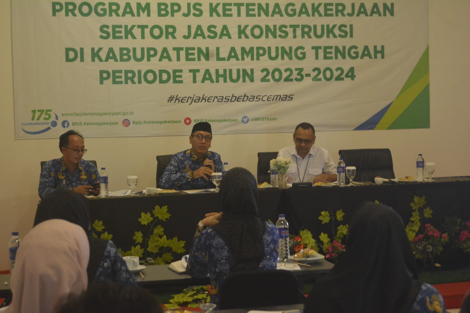 Asisten Ekonomi dan Pembangunan, Drs. Hi. Rusmadi, M.M mewakili Bupati Lampung Tengah ( Lamteng ) menghadiri dan membuka secara resmi Sosialisasi Monitoring dan Evaluasi Program BPJS Ketenagakerjaan Sektor Jasa Kontruksi di Kabupaten Lamteng Periode Tahun 2023-2024, kegiatan tersebut bertempat di Hotel BBC Bandar Jaya, Lamteng. Rabu ( 17/7/2024 ). Hadir dalam kegiatan tersebut antara lain, Kepala BPJS Ketenagakerjaan Lamteng, Adi Hendarto dan para Perangkat Daerah terkait dilingkungan Pemerintah Kabupaten ( Pemkab ) Lamteng. Menurut Kepala BPJS Ketenagakerjaan, Adi Hendarto Jaminan Sektor Jasa Kontruksi dasar hukumnya yakni Peraturan Menteri Ketenagakerjaan Nomor 5 Tahun 2021 dalam pasal 66 ayat (1) disampaikan bahwa setiap pemberi kerja jasa kontruksi wajib mendaftarkan pekerjanya dalam program JKK dan program JKM kepada BPJS Ketenagakerjaan. Lebih lanjut, Adi menjelaskan bahwa di Lamteng terdapat 185 proyek tidak terdaftar di BPJS Ketenagakerjaan serta sebagian besar pendaftaran proyek belum melampirkan data jumlah tenaga kerja yang sebenarnya beserta by name by adress ( BNBA ). Diakhir sambutannya, Adi berharap kepada Pemkab Lamteng untuk menghimbau pelaksana jasa kontruksi dalam rangka memberikan perlindungan optimal tenaga kerja sektor jasa kontruksi di wilayah Lamteng, pelaksana jasa kontruksi supaya didaftarkan di BPJS ketenagakerjaan. Asisten Ekonomi dan Pembangunan, Rusmadi dalam sambutannya mengatakan apresiasi kepada BPJS Ketenagakerjaan Lamteng atas pelaksanaan kegiatan monitoring dan evaluasi ini, serta dukunganya terkait pelaksanaan program BPJS Ketenagakerjaan dan menghimbau kepada seluruh pelaksana sektor jasa konstruksi yang ada di Perangkat Daerah Pemkab Lamteng untuk terdaftar menjadi peserta BPJS Ketenagakerjaan. Dalam rangka memberikan perlindungan tenaga kerja sektor jasa kontruksi di wilayah Kabupaten Lamteng. Pelaksana jasa kontruksi yang melaksanakan pekerjaan kontruksi Pemkab Lamteng wajib mendaftarkan kontruksinya diawal sebelum pelaksanaan proyek.Rusmadi juga berharap dengan kegiatan ini dari hasil evaluasi diperoleh informasi masih banyak yang perlu dioptimalkan agar sektor jasa konstruksi maksimal melindungi tenaga kerja. "Tahun 2024 kita berharap hasil evaluasi ini di ditindaklanjuti untuk bisa lebih baik penerapannya” ujar Rusmadi. (Diskominfotik Lampung Tengah)