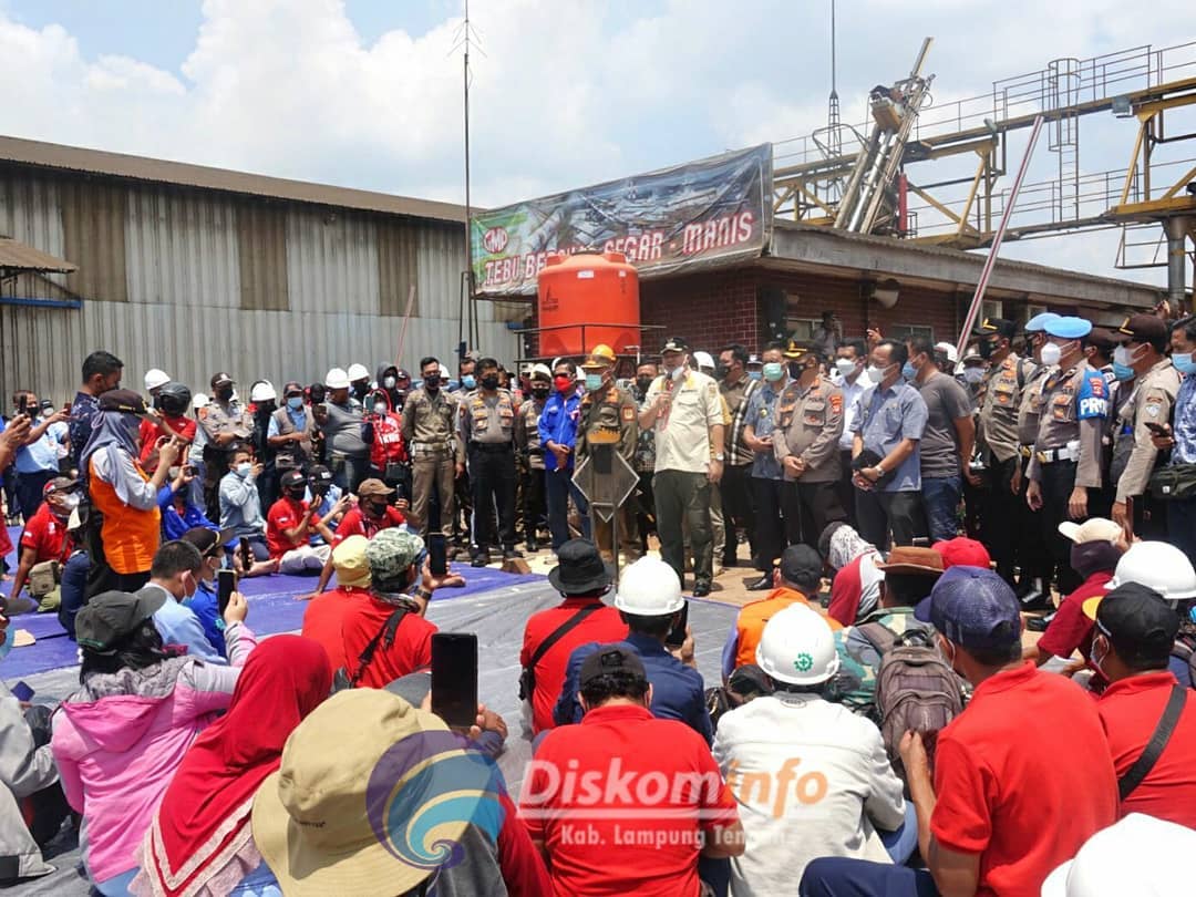 Situasi Mogok kerja yang terjadi di PT.GMP ( Gunung Madu Plantantions ) yang dilakukan oleh seluruh pegawai berhasil direda Bupati Lampung Tengah. Bupati yang hadir bersama Kapolres langsung dan Kasat Pol PP langsung meredakan amarah para pekerja yang menuntut kesamaan penghitungan jasa produksi bagi seluruh pegawai. Kegiatan perusahaan berhenti sejak hari Kamis 9 September 2021, seluruh pekerja mulai dari Divisi 1 dan Divisi 7 berkumpul di Divisi 2 Untuk menyampaikan aspirasi mereka kepada perusahaan. Para pegawai berharap tidak adanya perbedaan dalam pembagian Bonus sehingga tidak menjadikan situasi yang merugikan semua pihak. Seperti yang diungkapkan oleh salah satu pekerja, Suryadi berharap pihak perusahaan membubarkan KPI ( Key Performence Indikator ), sehingga para pekerja mendapatkan pendapatan yang sama seperti di tahun-tahun sebelumnya. Bupati Lampung Tengah Musa Ahmad dan Kapolres menjadi mediator langsung antara perwakilan perusahaan dan perwakilan pegawai yang diwakili oleh Pengurus Unit Kerja Serikat Pekerja Seluruh Indonesia ( PUK SPSI ) untuk mendapatkan solusi dari kejadian ini. Setelah melakukan pertemuan selama 8 jam dan berjalan alot akhirnya tepat pukul 19.00 WIB didapatkan hasil kesepakatan antara kedua belah pihak salah satunya penghitungan jasa produksi 2021 akan menggunakan perhitungan PKB sebagaimana tercantum dalam Perjanjian Kerja Bersama ( PKB ) tahun 2018 - 2019. Bupati juga berpesan untuk para pegawai yang menyampaikan aspirasi bisa membubarkan diri dan berkativitas seperti biasa, mengingat saat ini masih dalam pandemi dan kita harus bersama sama menjaga protokol kesehatan agar tidak terjadi klaster baru mengingat saat ini Lampung Tengah sudah masuk kedalam zona kuning. (Diskominfo Kabupaten Lampung Tengah)