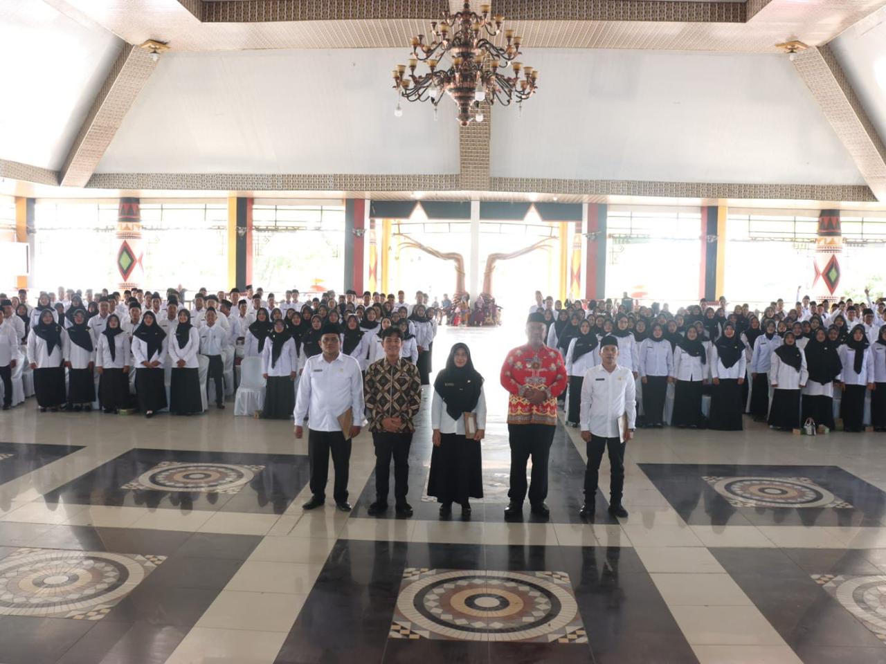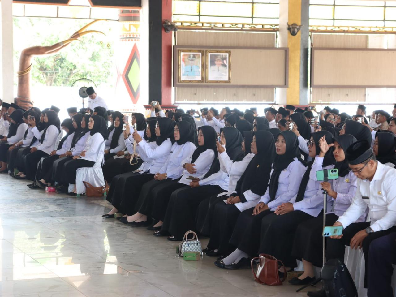 Wakil Bupati Lampung Tengah, I Komang Koheri, S.E., M.Sos., secara resmi menyerahkan Surat Keputusan (SK) Pegawai Pemerintah dengan Perjanjian Kerja (PPPK) kepada para Pendamping Program Keluarga Harapan (PKH) dan Tenaga Kesejahteraan Sosial Kecamatan (TKSK). Acara berlangsung di Sesat Agung Nuwo Balak, Jum’at (03/10/2025), dengan dihadiri Kepala Dinas Sosial Lampung Tengah, Ari Nugraha Mukti, S.STP., M.M., beserta sejumlah tamu undangan. Dalam laporannya, Kepala Dinas Sosial Lampung Tengah, Ari Nugraha Mukti menjelaskan bahwa penyerahan SK ini berdasarkan Surat Menteri Sosial Republik Indonesia Nomor 2740/1.3/KP.04/10/2025 tanggal 2 Oktober 2025, yang mengatur tentang pelantikan PPPK tenaga kesehatan, guru, dan pengangkatan PPPK teknis khusus di lingkungan Kementerian Sosial. “Ada total 248 orang yang menerima SK dari Menteri Sosial, yang terdiri dari 242 Pendamping PKH, 14 Tenaga Kesejahteraan Sosial Kecamatan, serta 2 pekerja sosial,” ujar Ari Nugraha Mukti. Dengan penetapan status sebagai PPPK, para tenaga pendamping ini diharapkan dapat meningkatkan kualitas pelayanan sosial di Kabupaten Lampung Tengah. Wakil Bupati I Komang Koheri dalam sambutannya menegaskan bahwa momen ini merupakan langkah bersejarah sekaligus sebuah amanah besar. “Saudara-saudara telah dipercaya oleh negara untuk menjadi garda terdepan dalam memperkuat pelayanan sosial, mendampingi masyarakat, dan memastikan program perlindungan sosial berjalan dengan baik, tepat sasaran, serta memberikan manfaat nyata,” ujarnya. Ia juga menekankan peran krusial tenaga kesejahteraan sosial kecamatan sebagai ujung tombak di lapangan dalam memberikan pendampingan, pelayanan, serta solusi terhadap berbagai permasalahan sosial masyarakat. “Tugas ini bukan tugas yang ringan karena menyangkut kehidupan banyak orang yang sangat membutuhkan perhatian dan kepedulian kita semua,” tambahnya. Lebih jauh, Wakil Bupati menyampaikan keyakinannya bahwa dengan bertambahnya tenaga pendamping PKH dan TKSK yang kini berstatus PPPK, pelayanan sosial di Kabupaten Lampung Tengah akan semakin kuat dan efektif. Ia menegaskan bahwa Pemerintah Daerah bersama Kementerian Sosial akan terus berkomitmen mendukung peran para pendamping dalam menjalankan tugas mulia tersebut. (Diskominfotik Lampung Tengah)