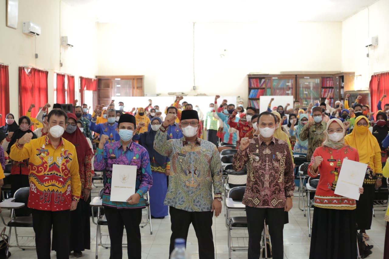 Kamis, 14 oktober 2021, Wakil Bupati Lampung Tengah Ardito Wijaya, serahkan SK kenaikan pangkat PNS. TMT Oktober 2021. Di aula kantor BPKSDM kabupaten Lampung Tengah. Dalam sambutanya wakail bupati mengatakan .kenaikam pangkat merupakan penghargaan yang di berikan atas prestasi kerja dan pengabdian PNS terhadab negara ,serta sebagai dorongan kepada PNS untuk lebih meningkatkan prestasi kerja dan pengabdianya. Mengingat Tantangan biroktasi kedepan semakin berat, maka PNS harus profesional. memiliki integritas ,mampu berinovasi, berwawasan global. Wakil Bupati meminta semua aparatur kabupaten lampung Tengah menjadi tauladan dan penggerak di masyarakat dalam upaya mengatasi pandemi COVID - 19. (Diskominfo Kabupaten Lampung Tengah)