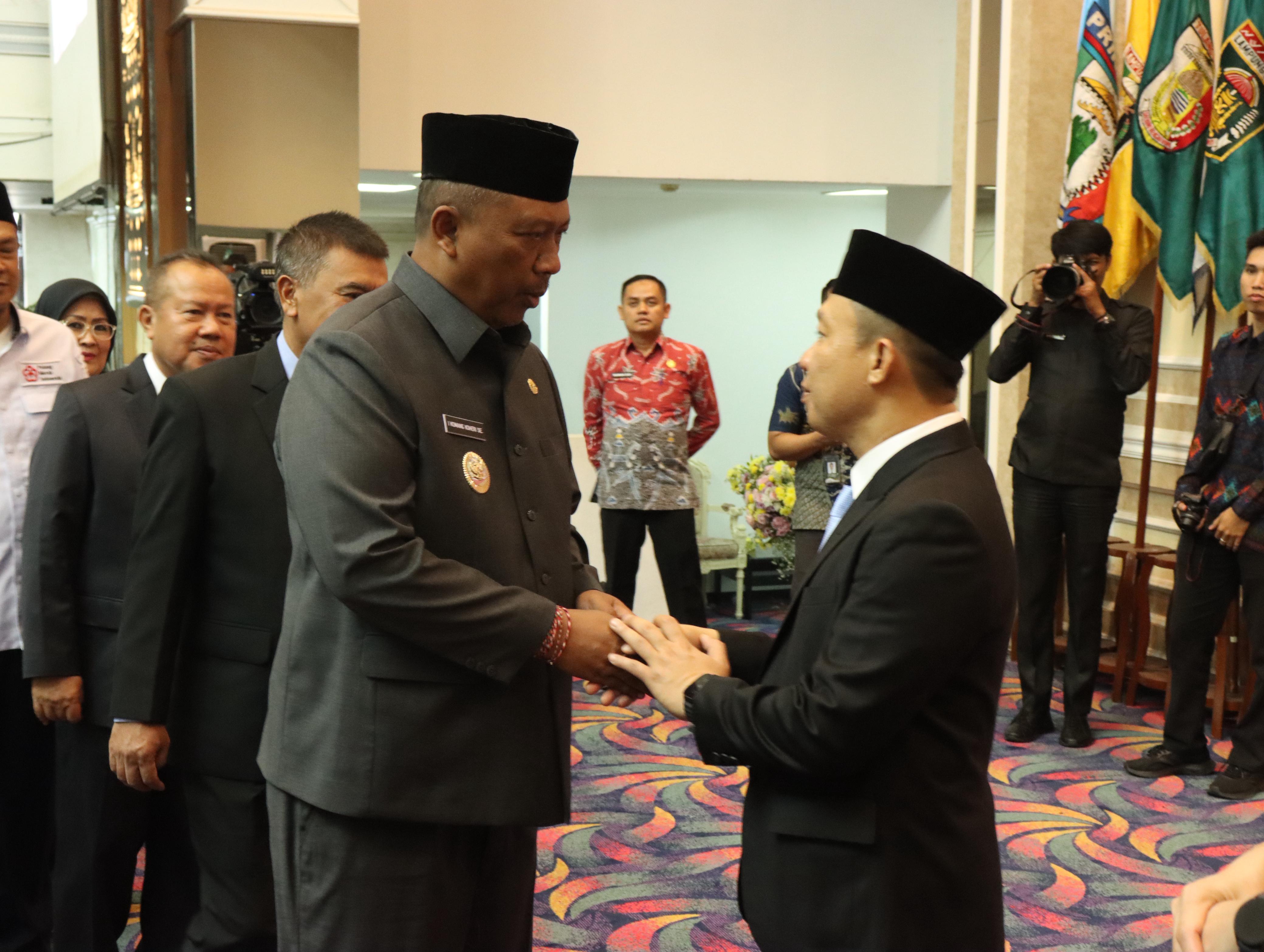 Wakil Bupati Lampung Tengah I Komang Koheri menghadiri Pelantikan Sekretaris Daerah dan Serah Terima Jabatan Dharma Wanita Provinsi Lampung. Pelantikan dan pengambilan sumpah dipimpin langsung oleh Gubernur Lampung Rahmat Mirzani Djausal di Gedung Balai Keratun Lingkungan Kantor Gubernur Lampung, Jum’at(20/06/2025). Pelantikan Marindo Kurniawan tersebut berdasarkan dengan Surat Keputusan Presiden Republik Indonesia Nomor:100/TPA Tahun 2025 Tertanggal 4 Juni 2025. Dalam sambutanya Gubernur Lampung Mirza, mengatakan jika pelantikan hari ini bukan hanya seremonial belaka, melainkan sebuah momen penting yang menandai awal dari tanggung jawab besar dari perjalanan Pemerintah Daerah. Gubernur Lampung juga menenkankan jabatan Sekertaris Daerah Provinsi Lampung bukan sekedar gelar administratif, melainkan tangga pengabdian tertinggi dalam birokrasi. Rahmat Mirzani Djausal juga berharap dengan pelantikan ini, diharapkan dapat menjalankan amanah yang telah di berikan dengan penuh dedikasi dan membawa birokrasi Provinsi Lampung kearah yang lebih baik dan responsif terhadap kebutuhan masyarakat. Sementara itu Wakil Bupati Lampung Tengah disela sela Pelantikan mengucapkan selamat kepada Marindo Kurniawan sebagai Sekretaris Daerah Provinsi Lampung, kami Pemerintah Kabupaten Lampung Tengah berpesan kepada Sekda Provinsi Lampung dapat berkolaborasi dan komunikasi yang baik agar Pemerintah Daerah maupun Provinsi Lampung dapat maju dan sejahtera. (Diskominfotik Lampung Tengah)