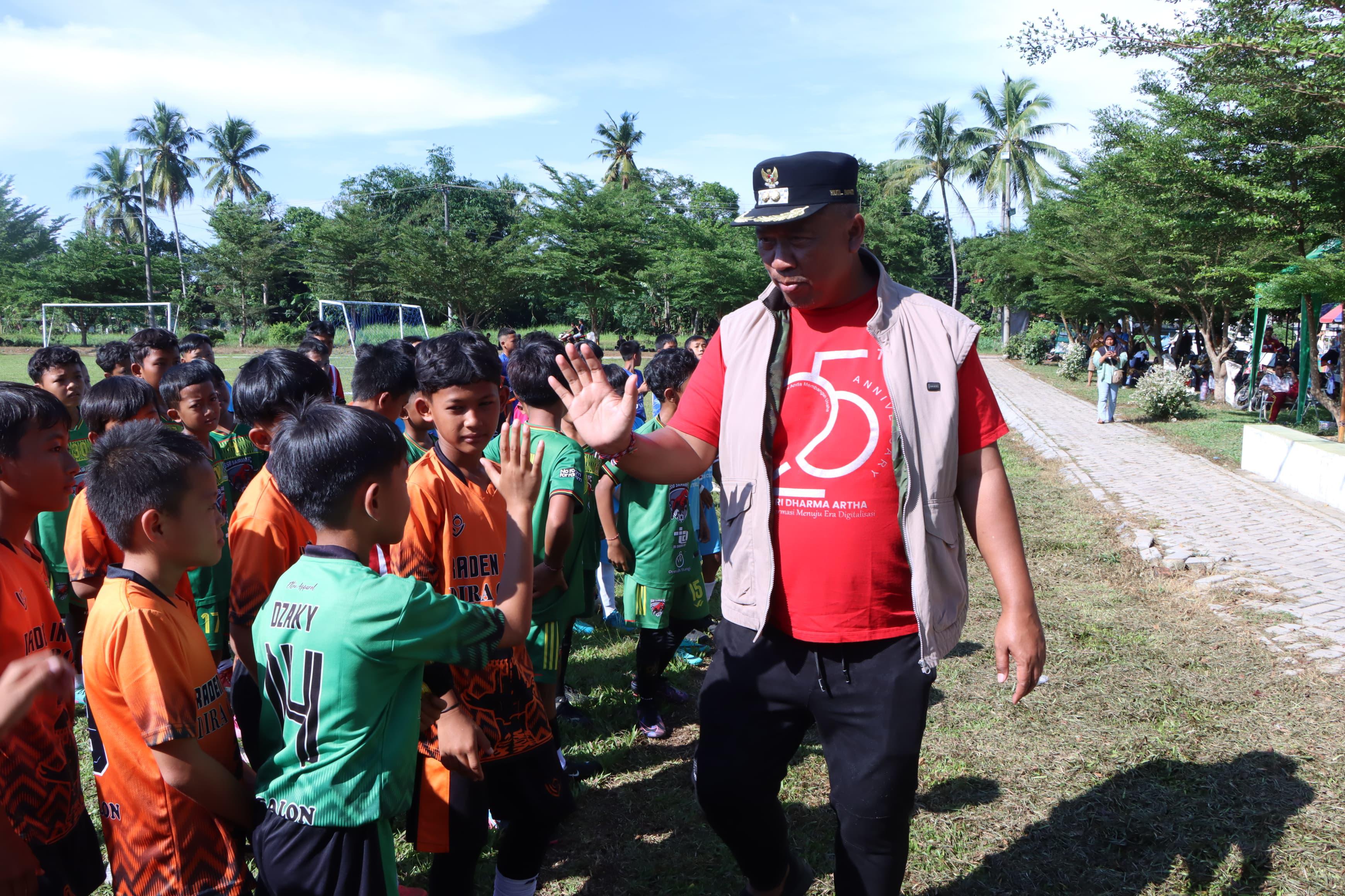 Wakil Bupati Lampung Tengah I Komang Koheri membuka Kompetisi Sepak Bola Piala Bupati Lampung Tengah Regional Lampung kategori U-11. Bertempat di Lapangan Kampung Ratna Chaton Kecamatan Seputih Raman, Minggu (15/06/2025). Pembukaan ditandai dengan tendangan bola perdana oleh Wakil Bupati I Komang Koheri dan Wakil Ketua TP PKK Lampung Tengah sekaligus DPRD Provinsi Lampung Ni Ketut Dewi Nadi. Dalam sambutanya Wakil Bupati Lampung Tengah I Komang Koheri mengucapkan saya mengapresiasi semua yang terlibat menyelenggarakan turnamen tersebut, khususnya kepada SSB Sairam FC serta semua peserta dan orang tua peserta yang begitu bersemangat dan antusias untuk mengikuti kejuaraan itu. I Komang Koheri Berharap dengan adanya kompetisi ini diharapkan bisa menjadi ajang atau sarana yang bernilai positif, khususnya untuk mencegah dan mengajak masyarakat dan generasi muda Lampung Tengah, supaya terhindar dari berbagai hal-hal yang negatif. Kegiatan tersebut dihadiri Oleh Wakil Ketua TP PKK Lampung Tengah sekaligus Anggota DPRD Provinsi Lampung, Ni Ketut Dewi Nadi, Camat seputih Raman I Made Suryana, Ketua SSB Sairam FC I Ketut Sucipta, Kepala Kampung Ratna Chaton Agus Riyanto, dan tamu undangan. (Diskominfotik Lampung Tengah)