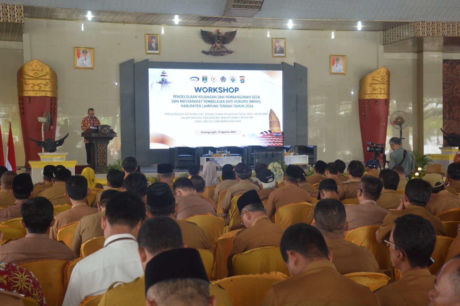 Pj.Sekdakab Lampung Tengah, Drs Kusuma Riyadi.M.M. Mewakili Bupati Lampung Tengah, Musa Ahmad. S.Sos.M.M. membuka secara resmi Workshop Evaluasi pengelolaan keuangan dan pembangunan desa dan Sosialisasi Masyarakat Pembelajar Anti Korupsi (MPAK) tahun 2024 di Kabupaten Lampung Tengah,senin 12/8/2024 di Nuwo Balak Gunung Sugih Lampung Tengah. Hadir dalam kegiatan tersebut Asisten Ekonomi Pembangunan Drs.Rusmadi.M.M., Anggota Komisi XI DPR RI. Junaidy Auly, Kepala perwakilan BPKP provinsi Lampung Nani ulina Kartika Nasution, Analis Kebijakan Ahli Muda badan Pengembangan dan Informasi kementrian desa Novita Riani, Kepala KPPN Metro Wawam Hermawan, Para Camat, dan Kepala kampung serta dinas terkait. Drs. Kusuma Riyadi.M.M mengucapkan Selamat Datang Kepada Anggota Komisi XI DPRD RI Bapak Ir. H. Junaidi Auly, M.M beserta Kepala Badan Pengawas Keuangan dan Pembangunan Pusat, di Bumi Beguwai Jejamo Wawai Kabupaten Lampung Tengah. Drs.Kusuma Riyadi.M.M sangat antusias dan berterimakasih kepada Badan Pengawasan Keuangan dan Pembangunan (BPKP), karena telah memilih Lampung Tengah sebagai salah satu tempat dilaksanakannya workshop evaluasi pengelolaan keuangan dan pembangunan desa tahun 2024.Kita ketahui bersama, bahwa korupsi dalam berbagai bentuknya, sudah pasti membawa dampak buruk bagi siapapun, termasuk bagi pemerintah dan lembaga-lembaga publik lainnya, yang akan berakibat pada rusaknya kepercayaan masyarakat, serta menghambat pembangunan ekonomi dan sosial. Untuk itu, kami sangat mendukung bahwa pemberantasan korupsi tidak hanya sebatas penindakan dan perbaikan sistem, tapi diperlukan penguatan budaya antikorupsi dan peran aktif masyarakat dalam membangun integritas serta sebagai upaya memitigasi risiko korupsi dalam tata kelola pemerintahan yang dilaksanakan oleh pemerintah sebagai salah satu aktor penyelenggara pembangunan daerah. Pembangunan di kampung atau desa diharapkan menjadi solusi, untuk mengatasi masalah ketimpangan pendapatan, antara masyarakat di kampung dengan masyarakat diperkotaan. karena dengan pembangunan yang dilakukan di kampung, tentu akan berdampak pada meningkatnya nilai tambah dan kesejahteraan, serta kualitas hidup masyarakat kampung. (Diskominfotik Lampung Tengah)