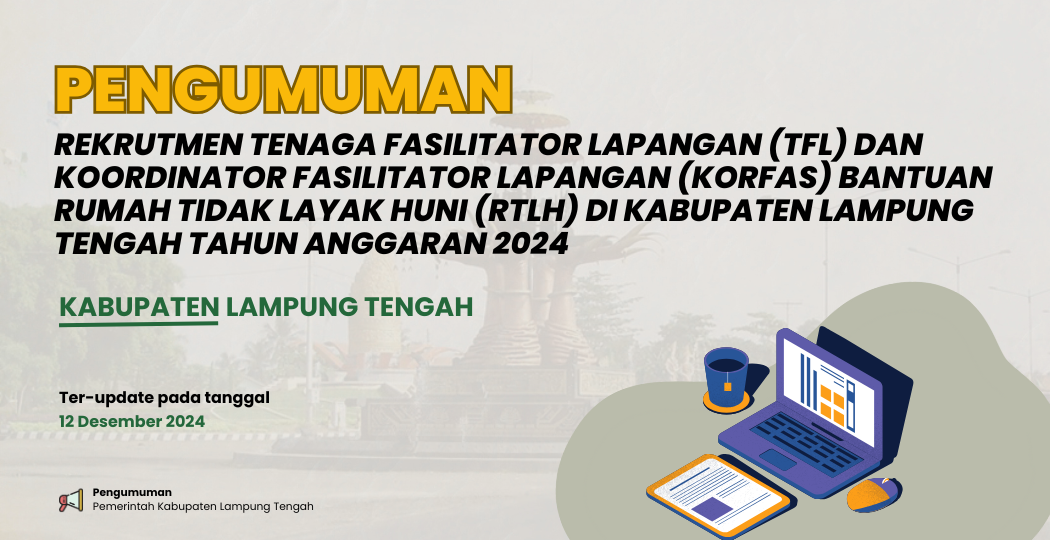 REKRUTMEN TENAGA FASILITATOR LAPANGAN (TFL) DAN KOORDINATOR FASILITATOR LAPANGAN (KORFAS) BANTUAN RUMAH TIDAK LAYAK HUNI (RTLH) DI KABUPATEN LAMPUNG TENGAH TAHUN 2024