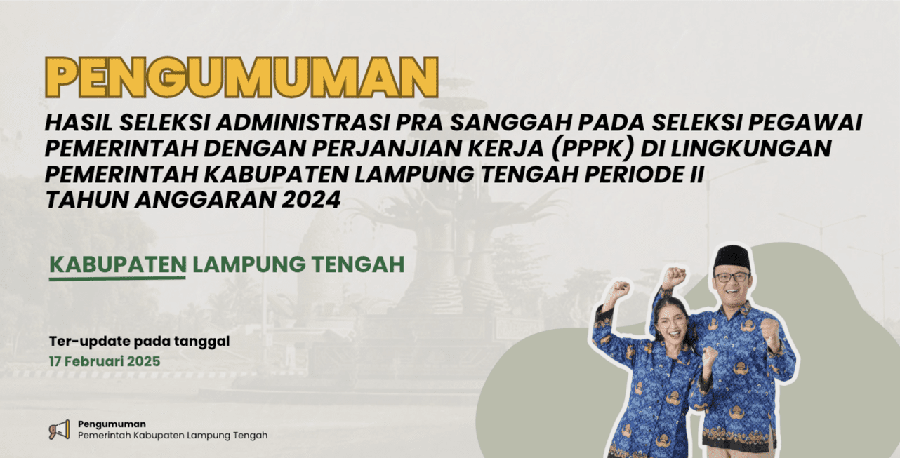 Hasil Seleksi Administrasi Pra Sanggah Pada Seleksi Pegawai Pemerintah Dengan Perjanjian Kerja (PPPK) di Lingkungan Pemerintah Kabupaten Lampung Tengah Periode II Tahun Anggaran 2024