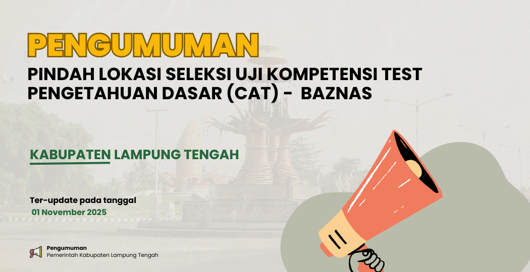 HASIL SELEKSI UJI KOMPETENSI (TEST PENGETAHUAN DASAR/CAT DAN PENULISAN MAKALAH) PENDAFTAR CALAON PIMPINAN BADAN AMIL ZAKAT NASIONAL (BAZNAS) KABUPATEN LAMPUNG TENGAH PERIODE TAHUN 2026 - 2031