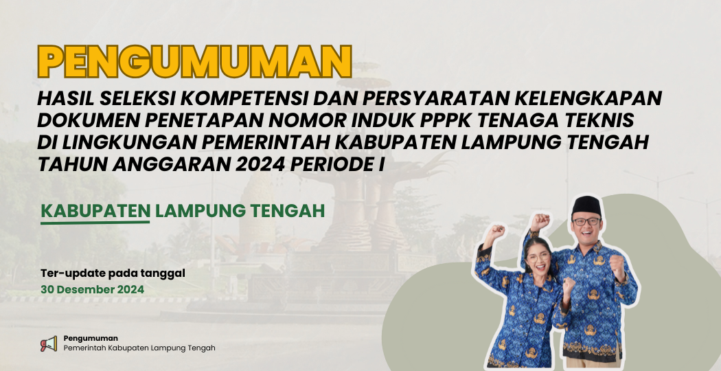 Hasil Seleksi Kompetensi dan Persyaratan Kelengkapan Dokumen Penetapan Nomor Induk PPPK Tenaga Teknis di Lingkungan Pemerintah Kabupaten Lampung Tengah Tahun Anggaran 2024 Periode I