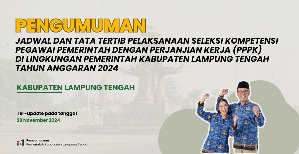 JADWAL DAN TATA TERTIB PELAKSANAAN SELEKSI KOMPETENSI PEGAWAI PEMERINTAH DENGAN PERJANJIAN KERJA ( PPPK) DI LINGKUNGAN PEMERINTAH KABUPATEN LAMPUNG TENGAH TAHUN ANGGARAN 2024