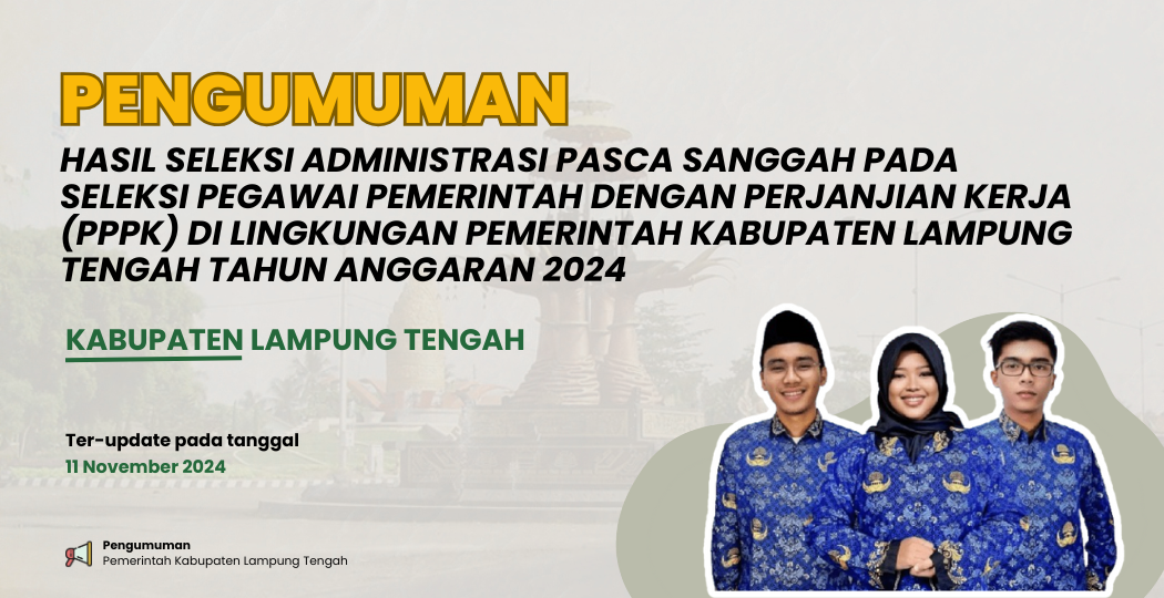 HASIL SELEKAI ADMINISTRASI PASCA SANGGAH PADA SELEKSI PEGAWAI PEMERINTAH DENGAN PERJANJIAN KERJA (PPPK) DI LINGKUNGAN PEMERINTAH KABUPATEN LAMPUNG TENGAH TAHUN ANGGARAN 2024