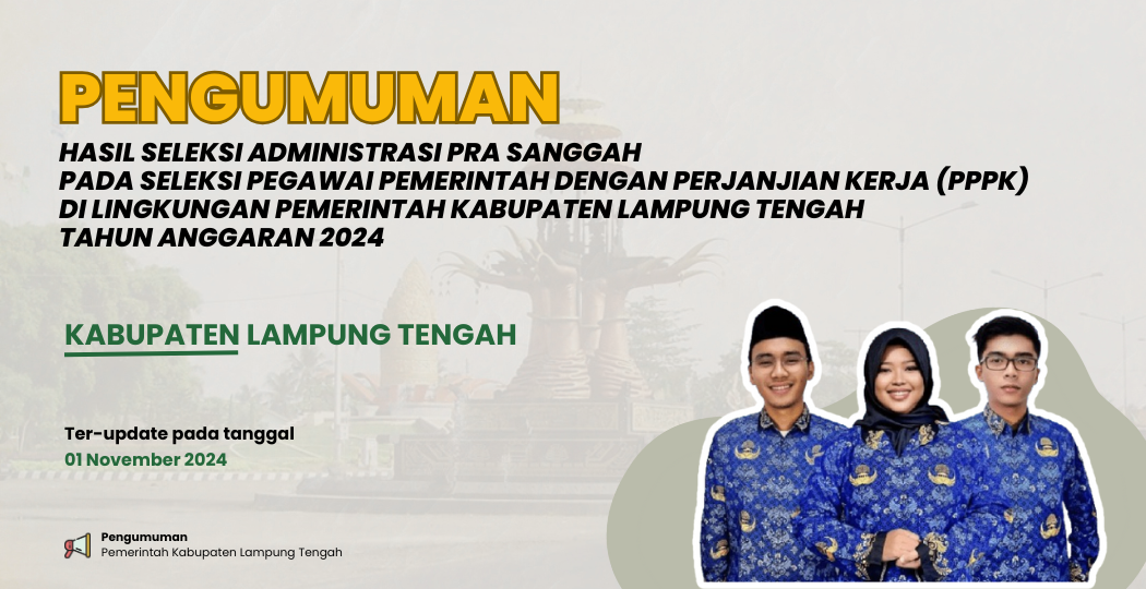 HASIL SELEKSI ADMINISTRASI PRA SANGGAH PADA SELEKSI PEGAWAI PEMERINTAH DENGAN PERJANJIAN KERJA (PPPK) DI LINGKUNGAN PEMERINTAH KABUPATEN LAMPUNG TENGAH TAHUN ANGGARAN 2024