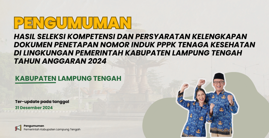Hasil Seleksi Kompetensi dan Persyaratan Kelengkapan Dokumen Penetapan Nomor Induk PPPK Tenaga Kesehatan di Lingkungan Pemerintah Kabupaten Lampung Tengah Tahun Anggaran 2024