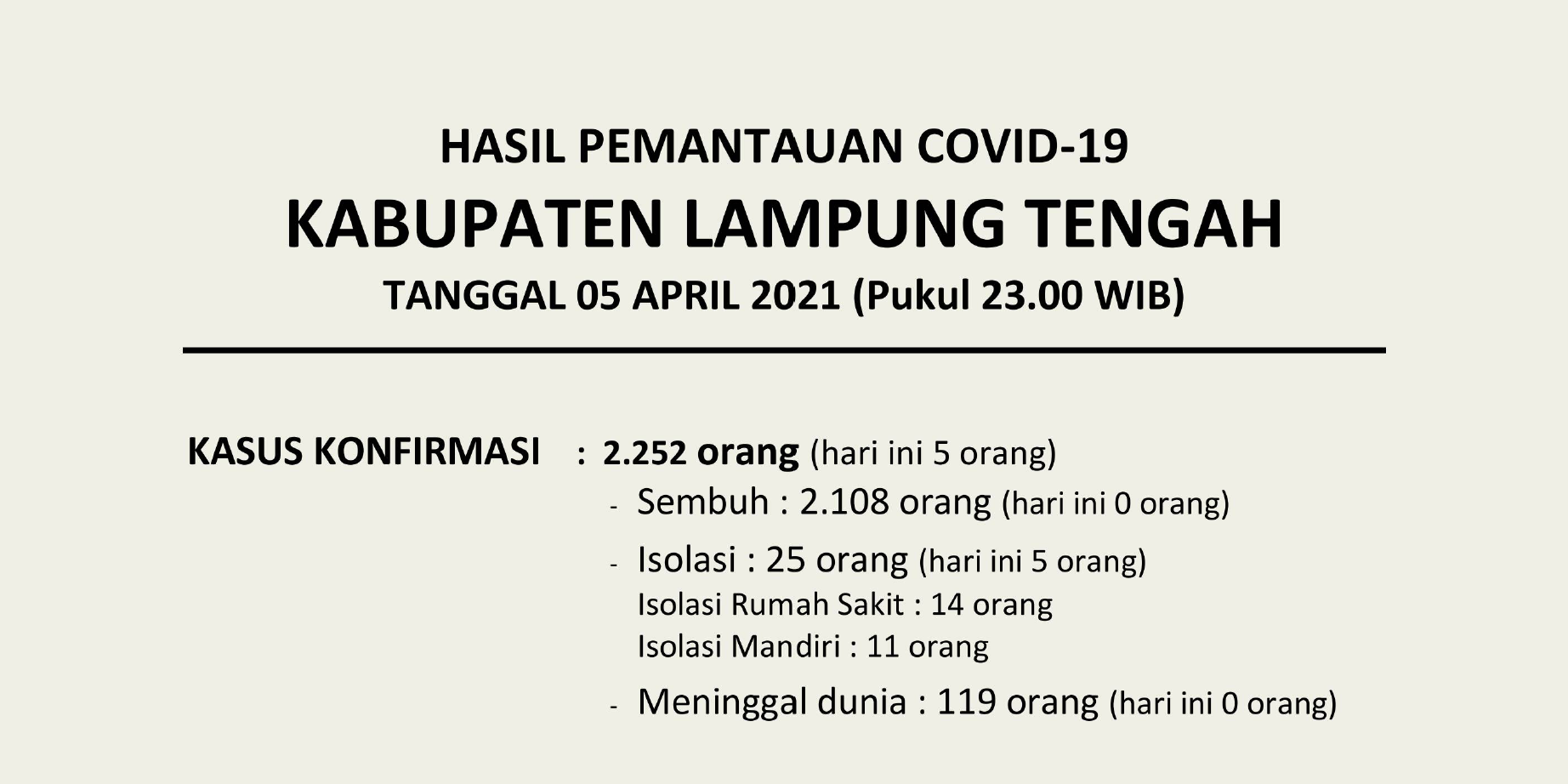 HASIL PEMANTAUAN COVID-19 KABUPATEN LAMPUNG TENGAH : Tanggal 05 April 2021 Pukul 23.00 WIB