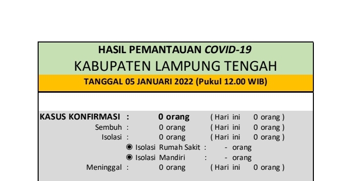 HASIL PEMANTAUAN COVID-19 KABUPATEN LAMPUNG TENGAH : Tanggal 05 Januari 2022
