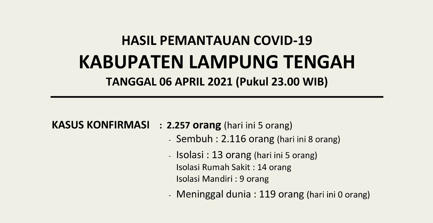 HASIL PEMANTAUAN COVID-19 KABUPATEN LAMPUNG TENGAH : Tanggal 06 April 2021 Pukul 23.00 WIB